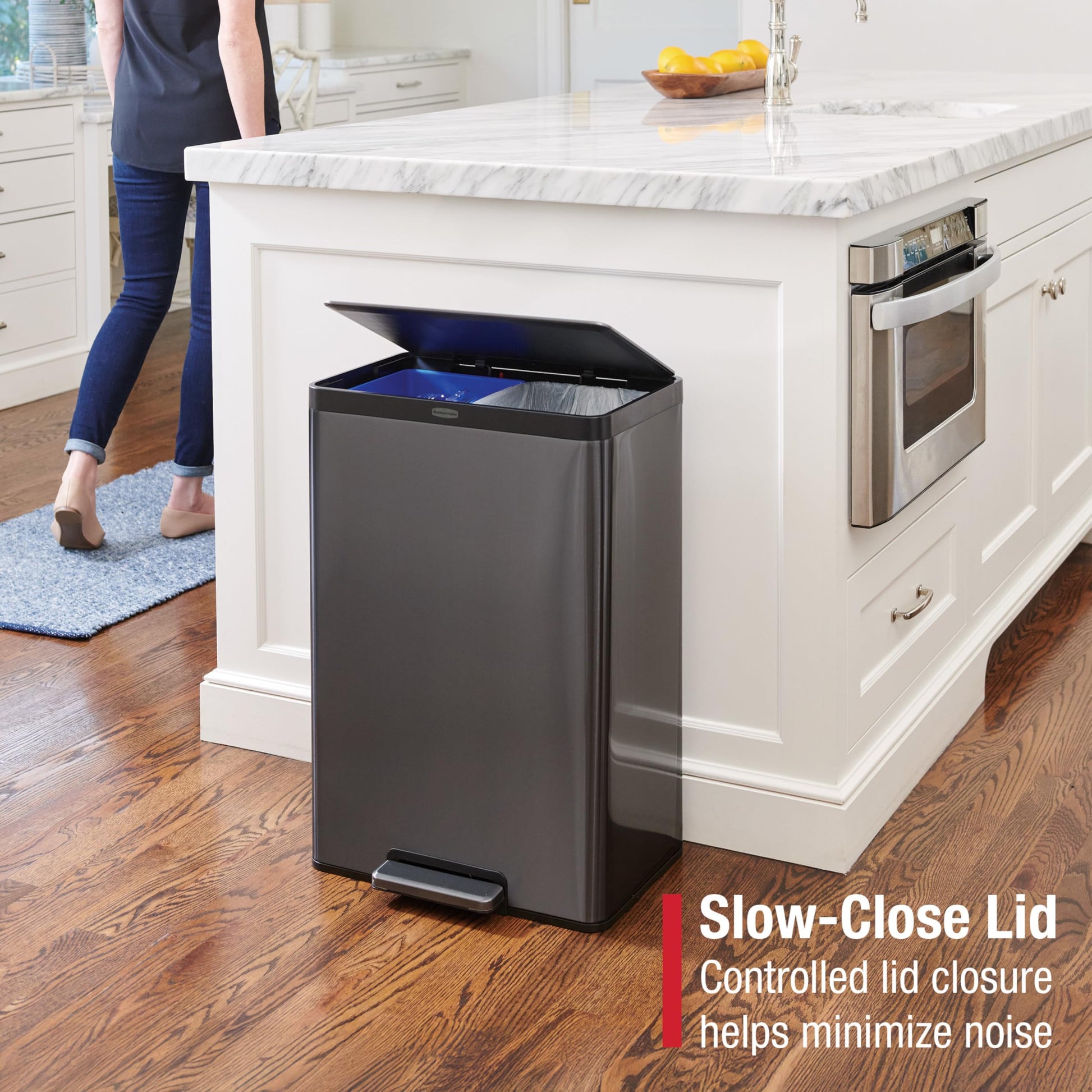 HANDS-FREE USE: The charcoal stainless-steel foot pedal stands up to daily use and removes the need to touch the lid during waste or recycling disposal to keep hands clean.