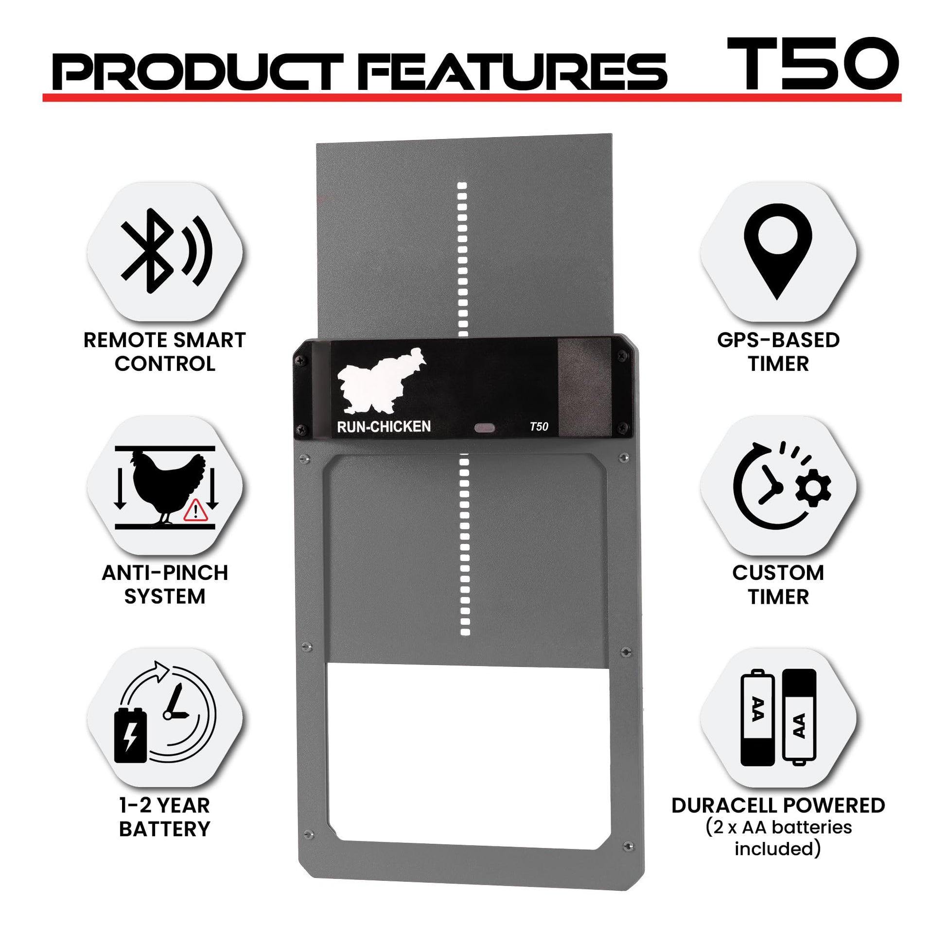 RUN-CHICKEN Door (Gray) Automatic Chicken Coop Door, Programmable with App, Battery Operated, Evening and Morning Delay, Aluminum Door,Chicken Gift, Electric Chicken Run, Model T50 Classic