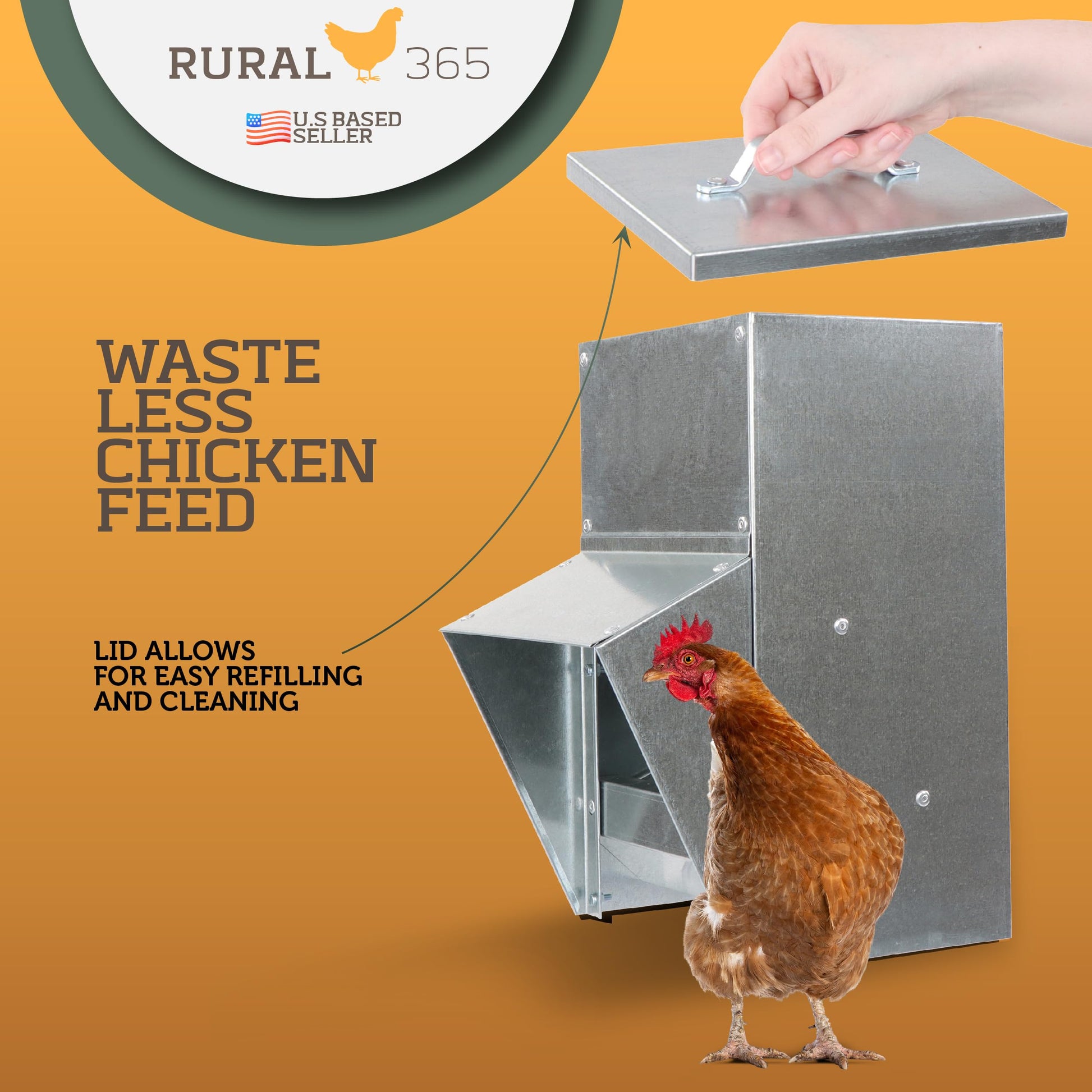 [For Your Coop]: Provide a steady supply of feed for your chickens, quails, ducks, and other domesticated birds with the Rural365 Chicken Feeders No Waste Automatic Chicken Feeder 11.5 Pounds Capacity