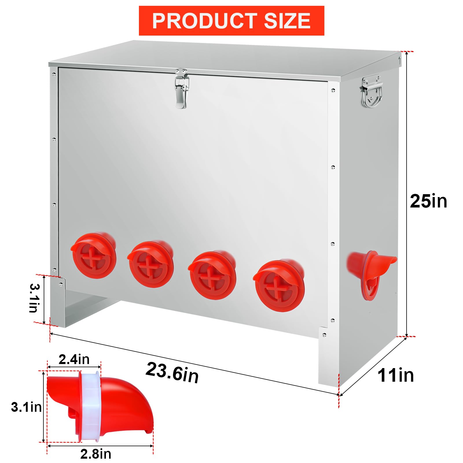 NO WASTE : The ports are designed to prevent feed from spilling when the feeder is tipped over, keeping the feeding area clean and reducing waste
