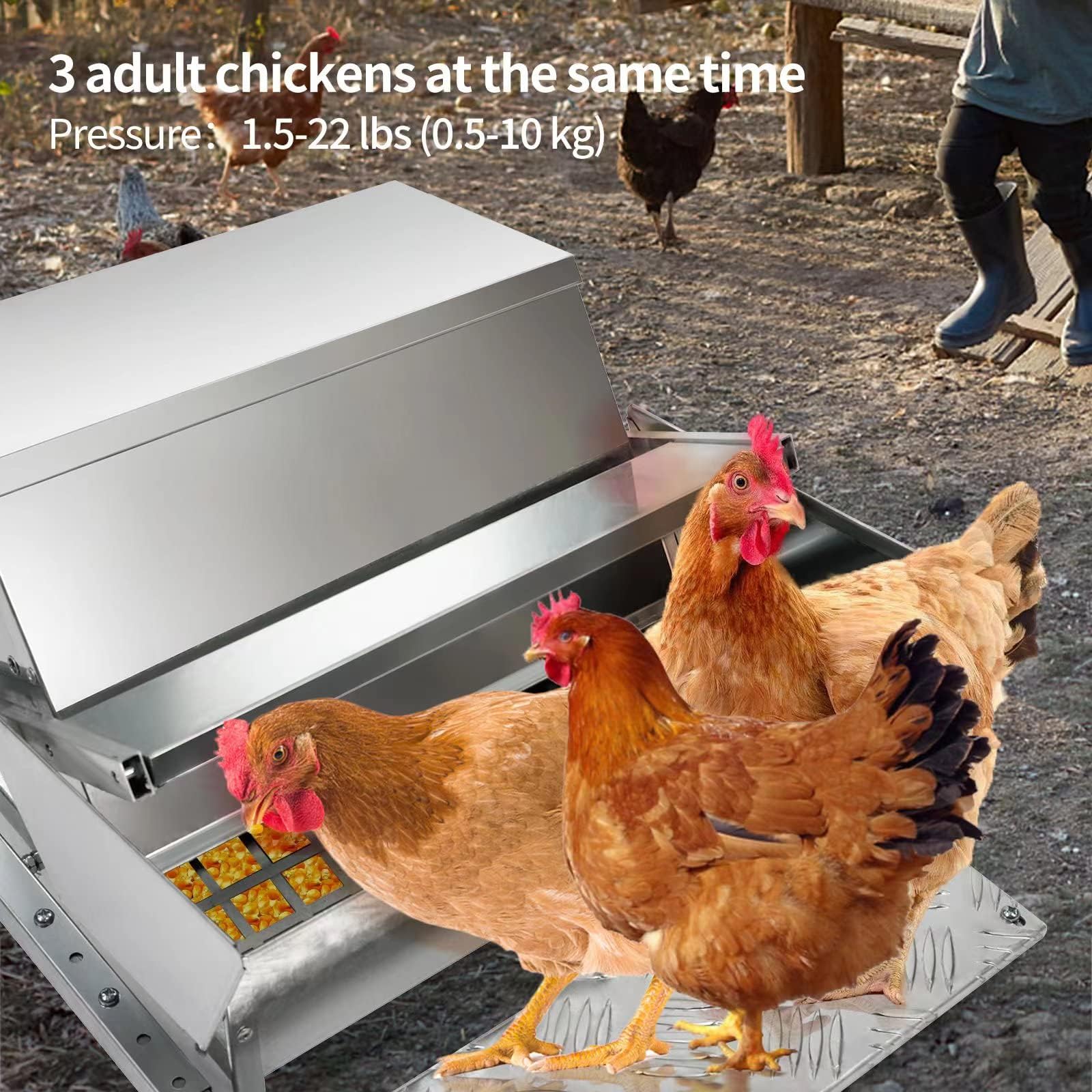 [Capability] Place on a flat surface. The pedal can withstand a pressure of 1.5-22 lbs (0.5kg-10kg), with a normal adult chicken volume of 1-3, depending on the actual situation. Not suitable for young chickens.
