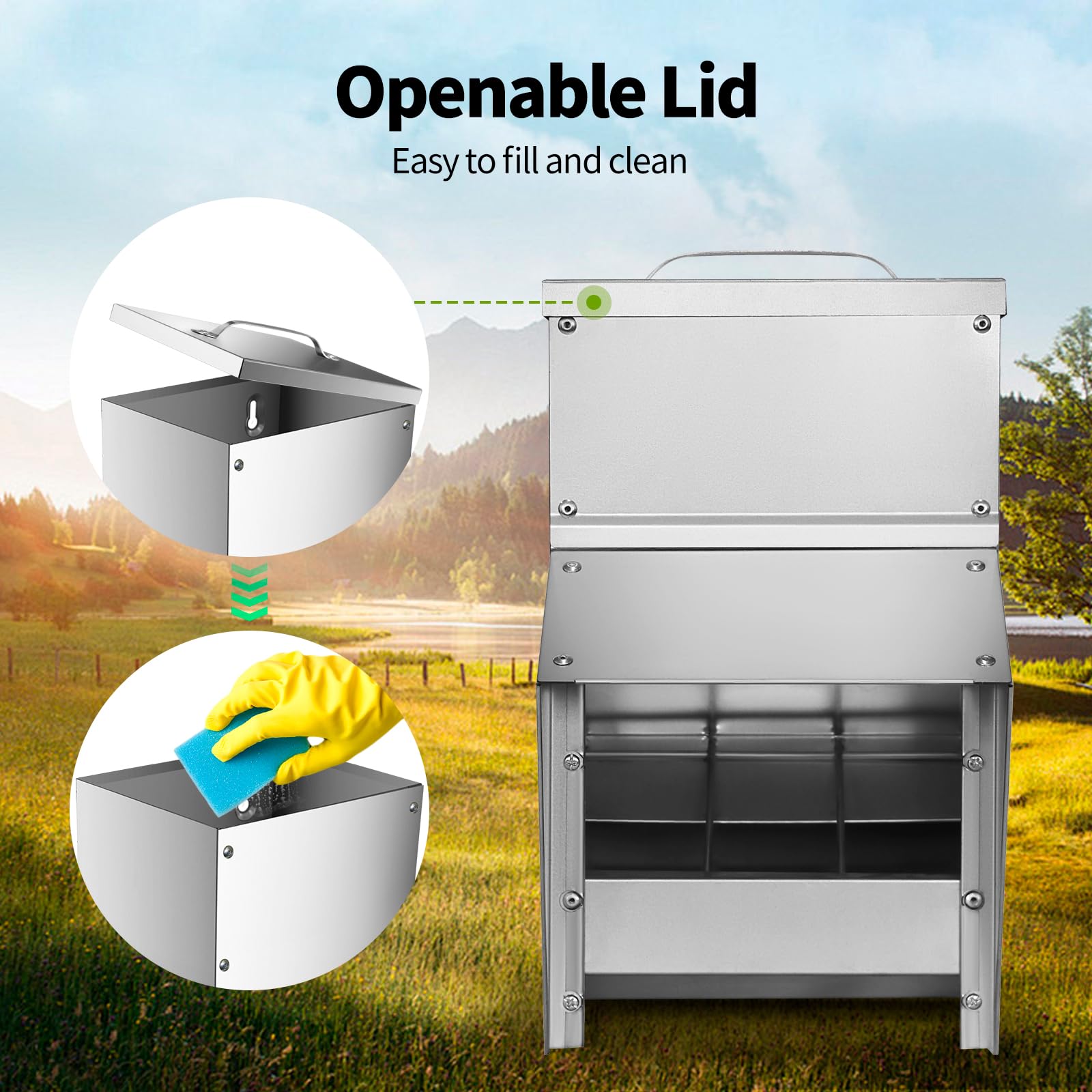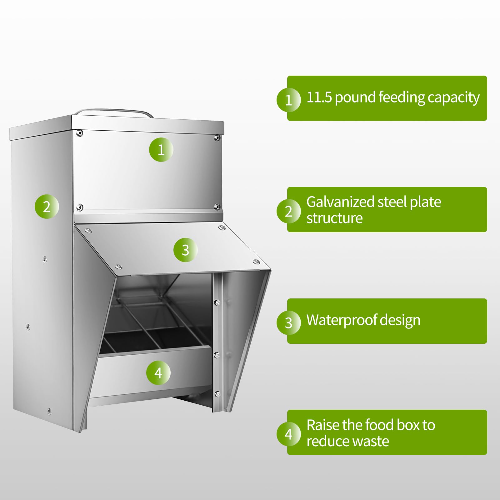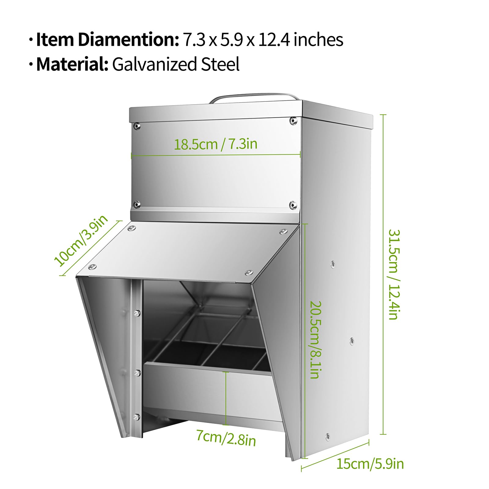 [Large Capacity] Our galvanized poultry feeder can hold 11.5 pounds of feed at once, providing a stable feed supply for your chickens, quails, ducks, and other poultry.