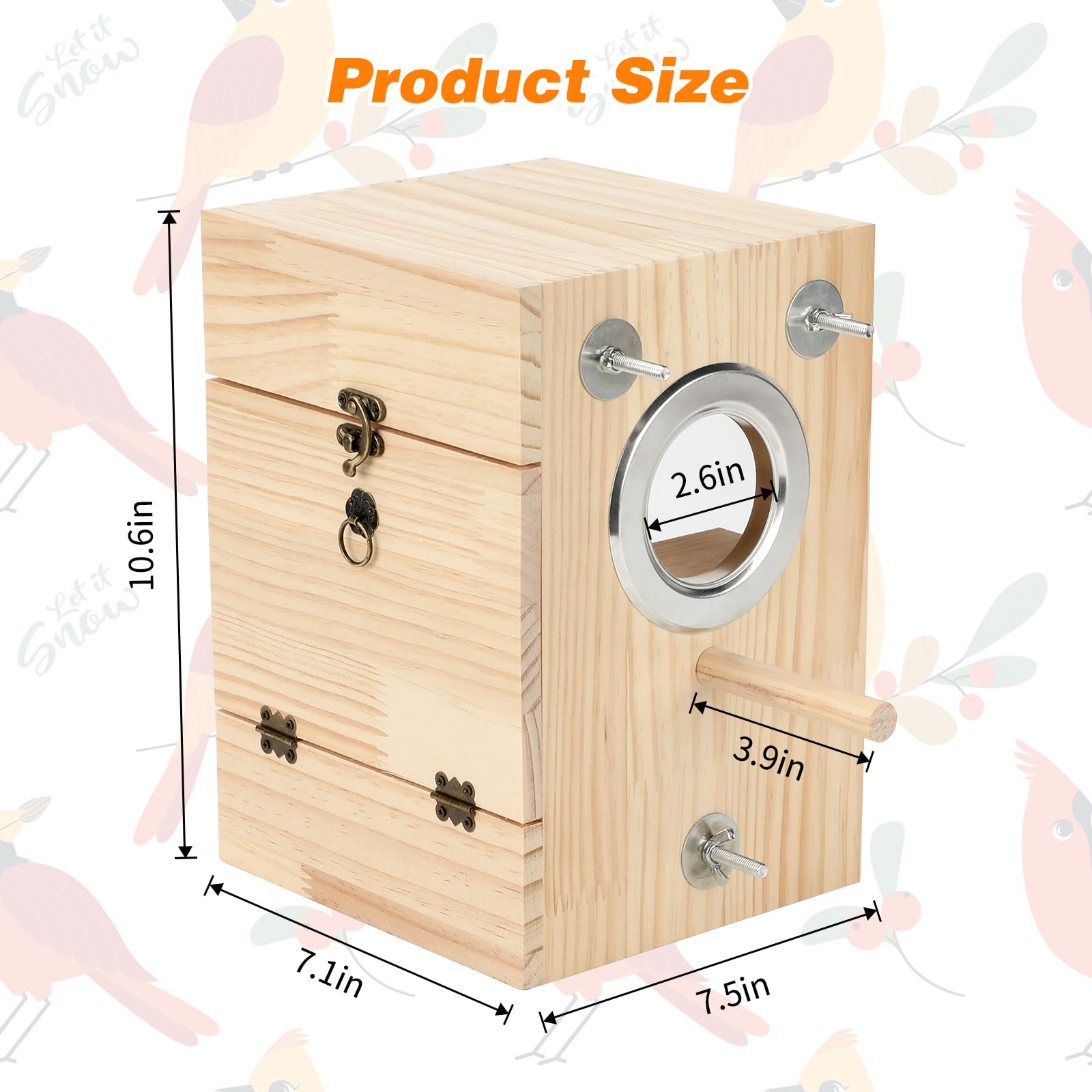Natural wood: The bird nesting boxes are made of natural pine wood, which is warm in winter and cool in summer, strong and durable; Self-contained forest scent allows your parrot to adapt to the new environment