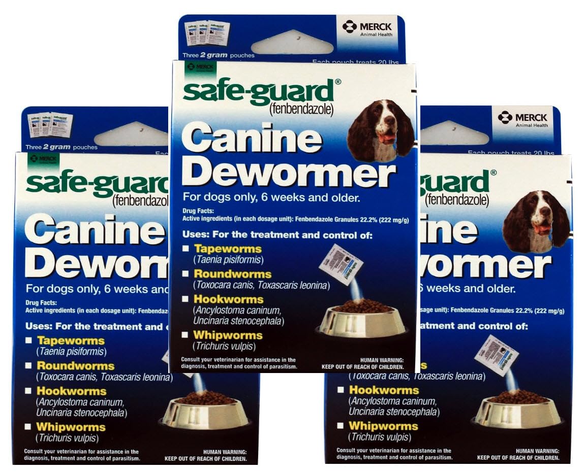 • Safe-Guard treats against Tapeworms, Roundworms, Hookworms, and Whipworms