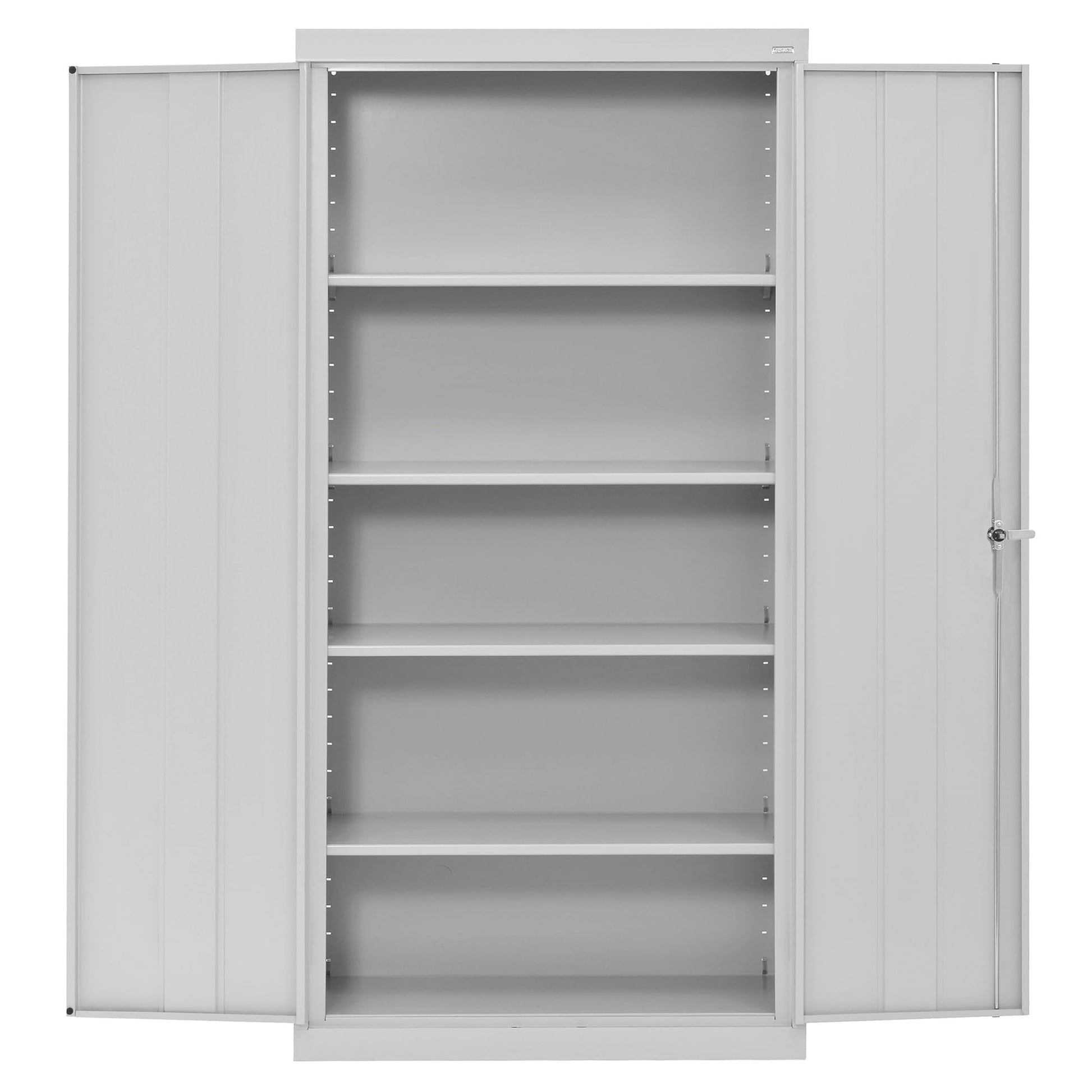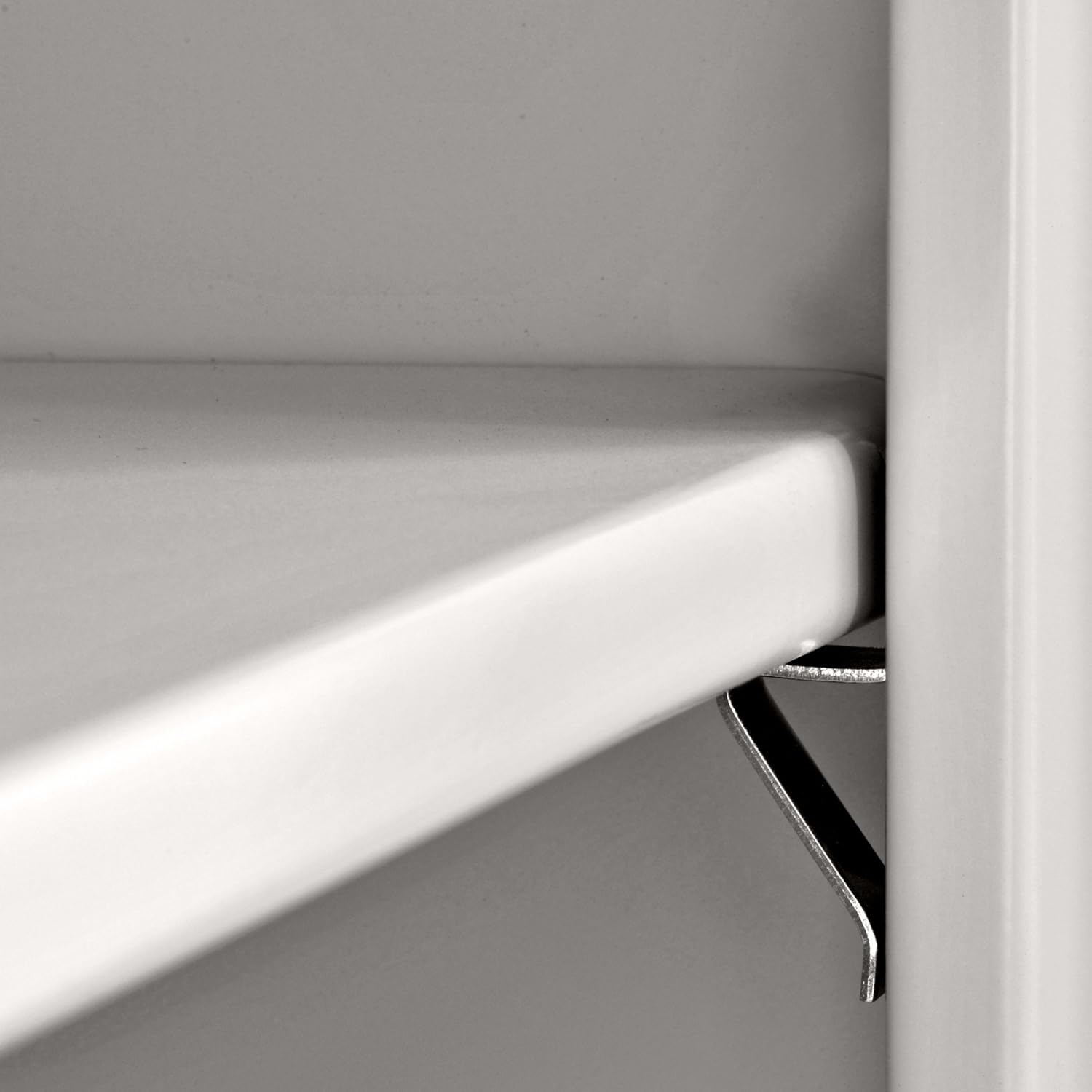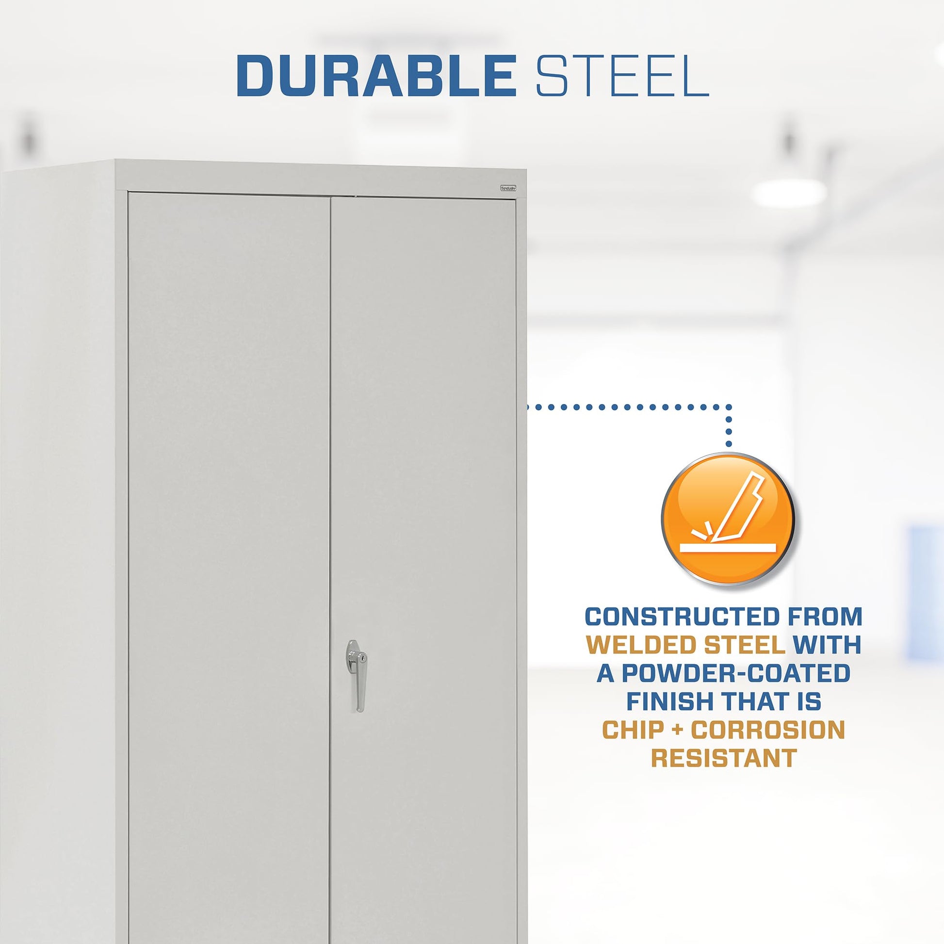 ADJUSTABLE SHELVES: Our metal storage cabinet features fully adjustable shelves on 2-inch centers, along with a raised bottom shelf, allowing you to customize the space to fit your specific needs