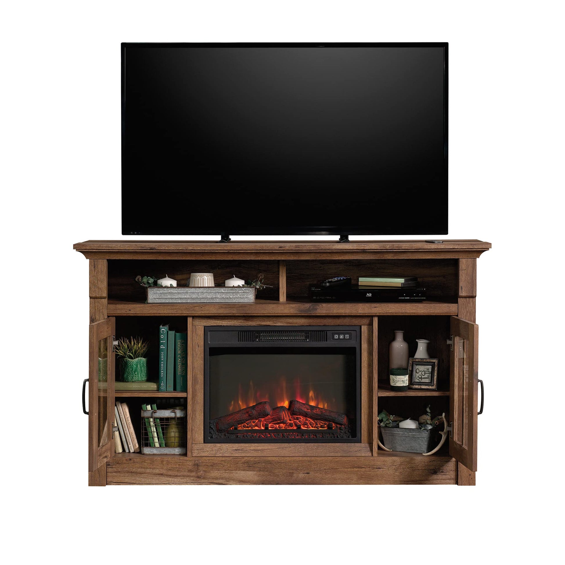 ELECTRIC FIREPLACE FOR AMBIANCE AND WARMTH – Experience the comfort of an electric firebox that heats up to 400 square feet, complete with a remote control and built-in overheat protection for peace of mind