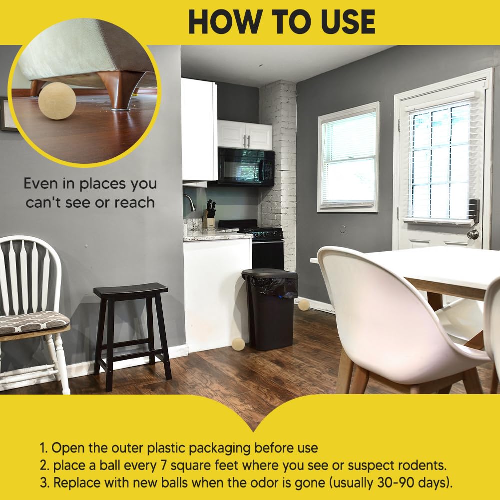 LONG-LASTING RODENT REPELLENT EFFECT: Each rodent repellent ball provides lasting defense for up to 60–90 days. It’s a hassle-free way to repel mice and rats from your home without constant maintenance or reapplication