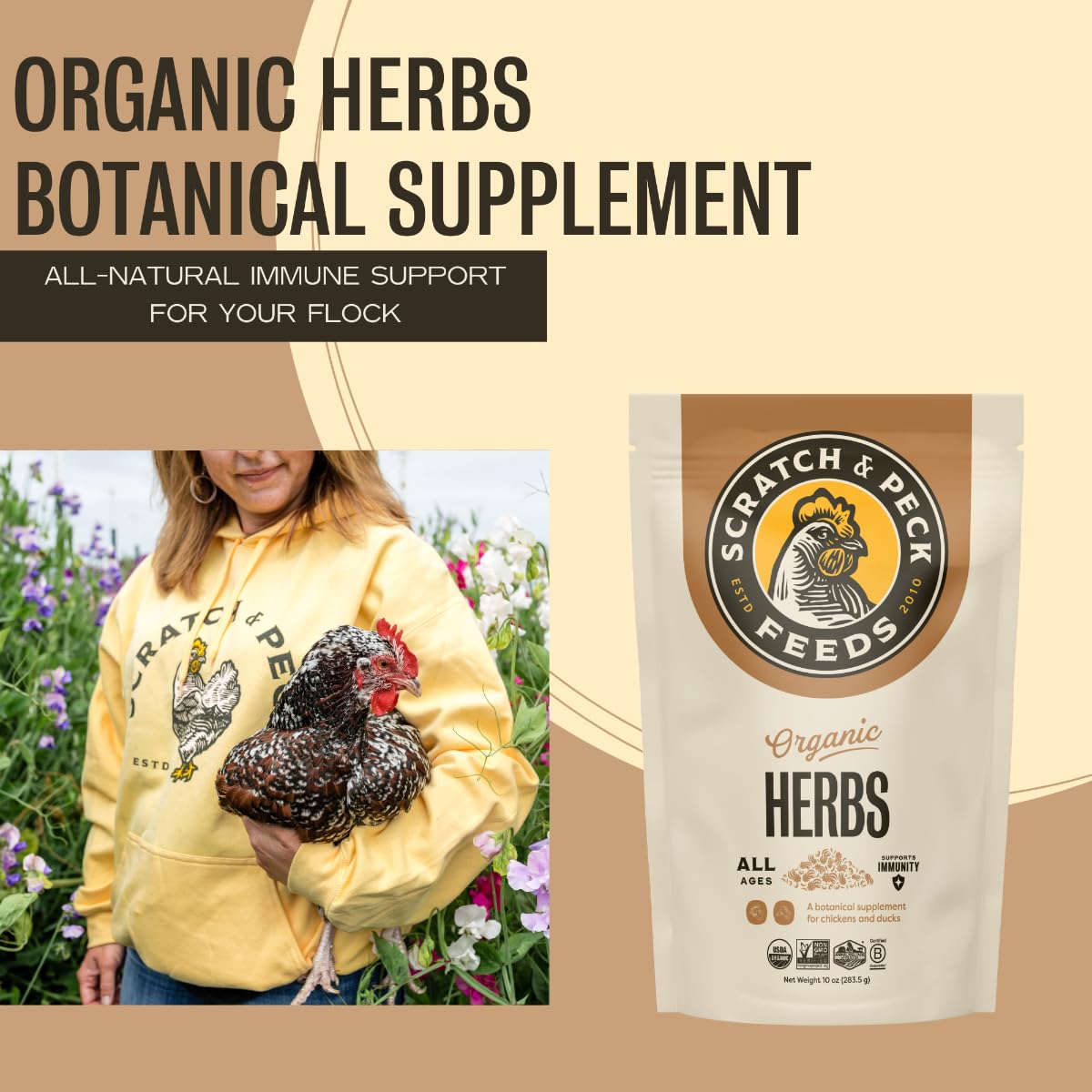 Scratch and Peck Dried Herbs Supplement for Chickens and Ducks - 10 oz Bag - Natural, Aromatic Nesting Box Herbs - Certified Organic and Non-GMO Project Verified