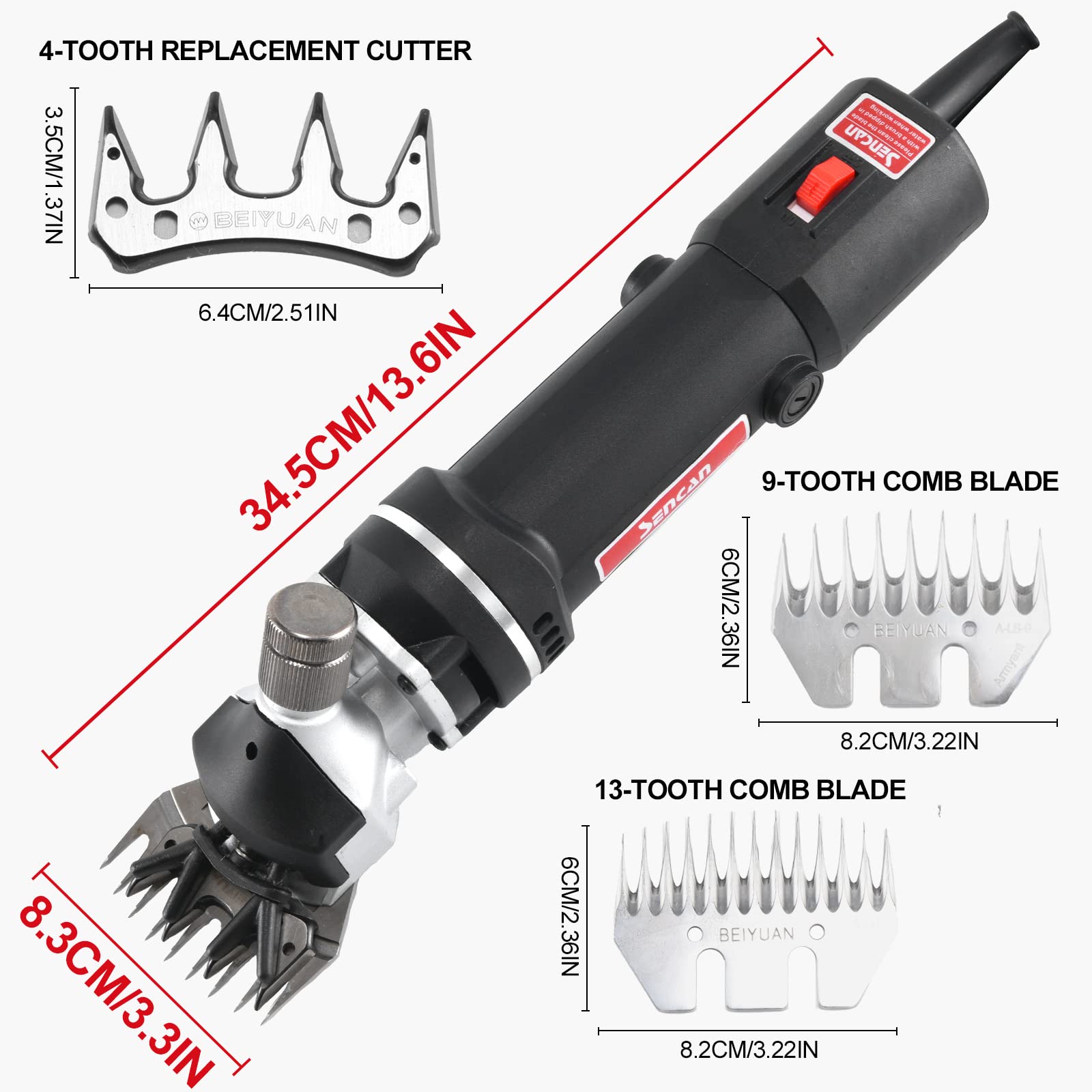 【PROFESSIONAL SHEEP SHEARS】: SENCAN sheep shear, a power of 750W and provides up to 2400r/min with comfortable grip protection to improve efficiency, this electric clippers makes your job of shearing much more easily and effectively