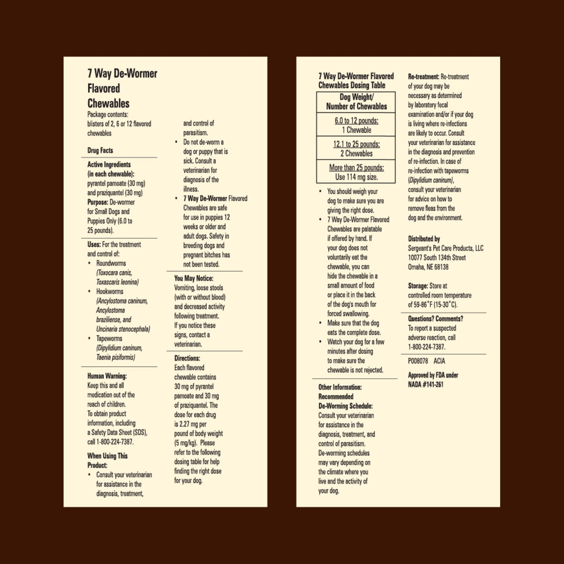 DEWORMER FOR SMALL DOGS & PUPPIES: 12 weeks and older, weighing 6 to 25 pounds.