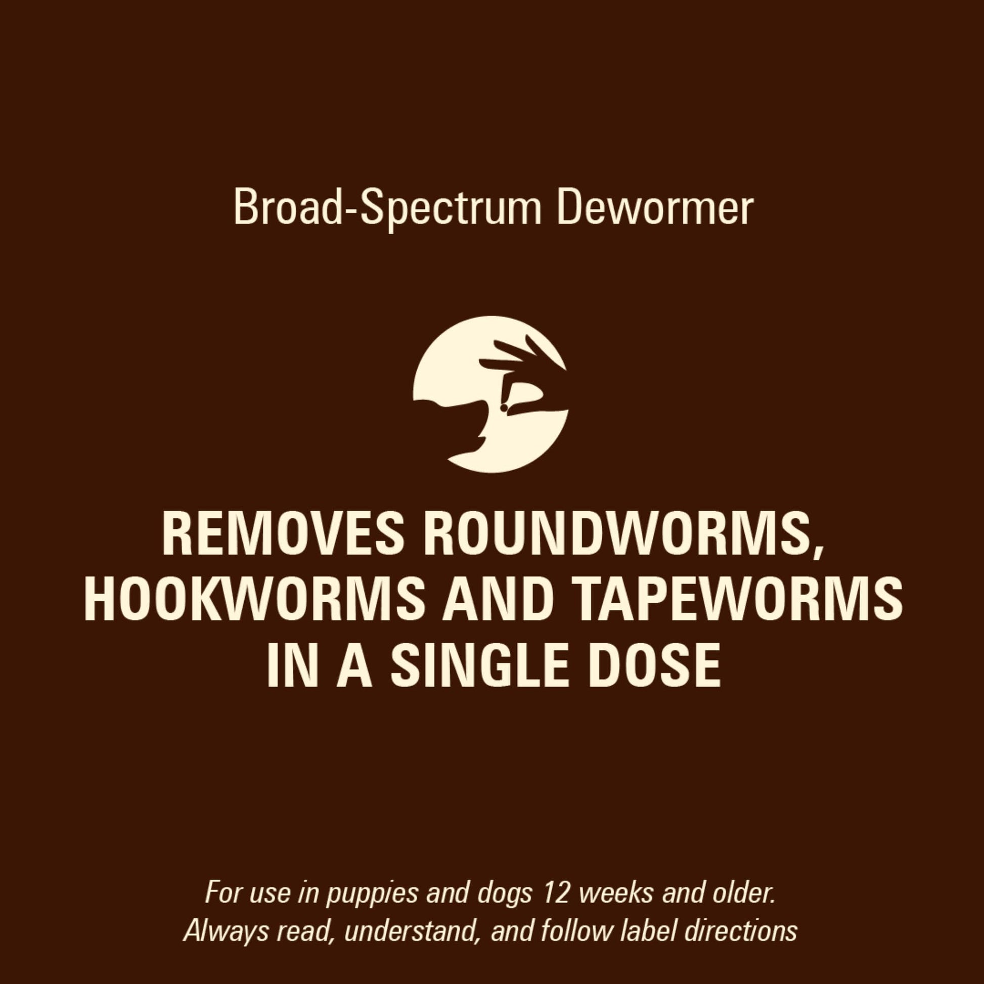 BROAD SPECTRUM: This dog dewormer treats and controls two types of tapeworms, two types of roundworms, and three types of hookworms.