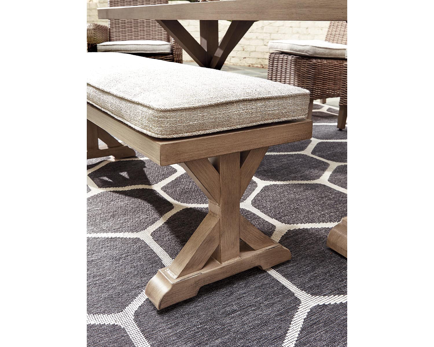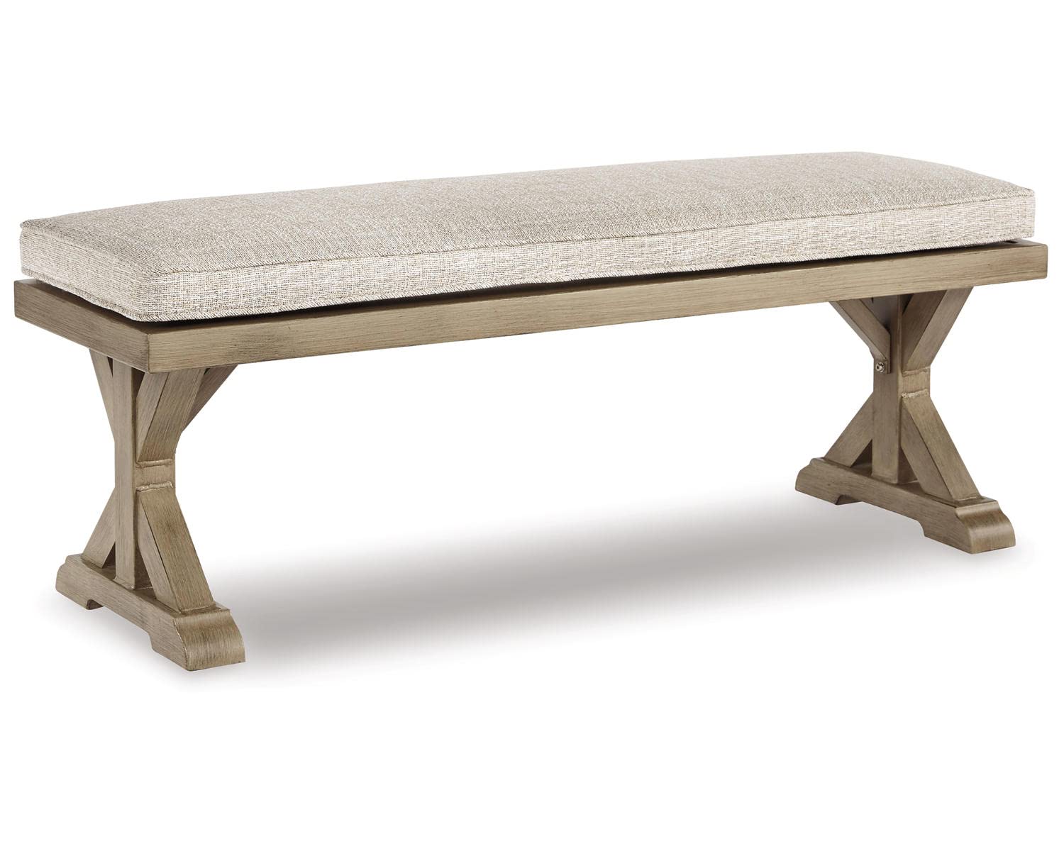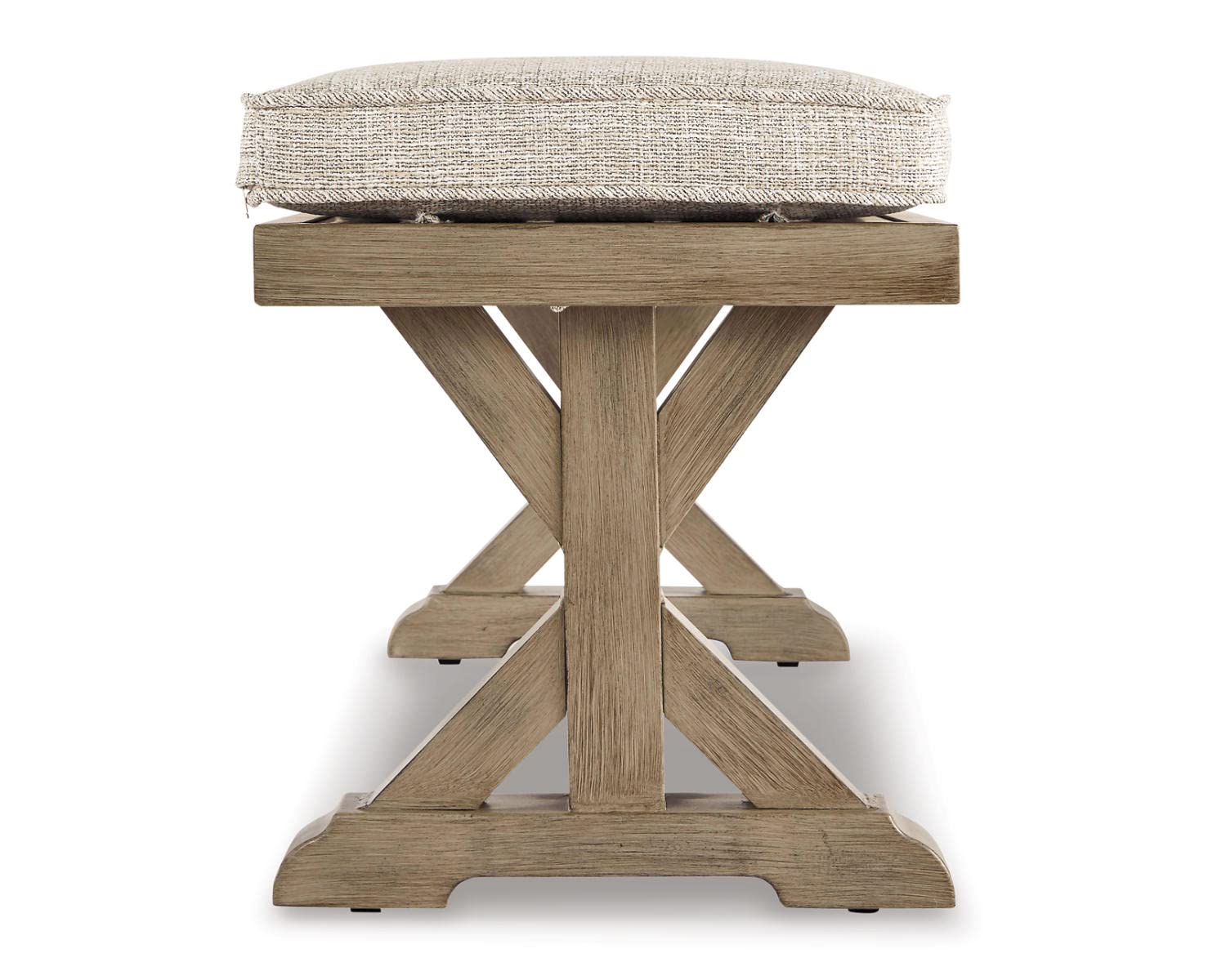 BENCH WITH CUSHION: A touch of beach inspired rustic refinement can do wonders for your decor, and this bench with cushion sweeps us away with its capability for indoor or outdoor use