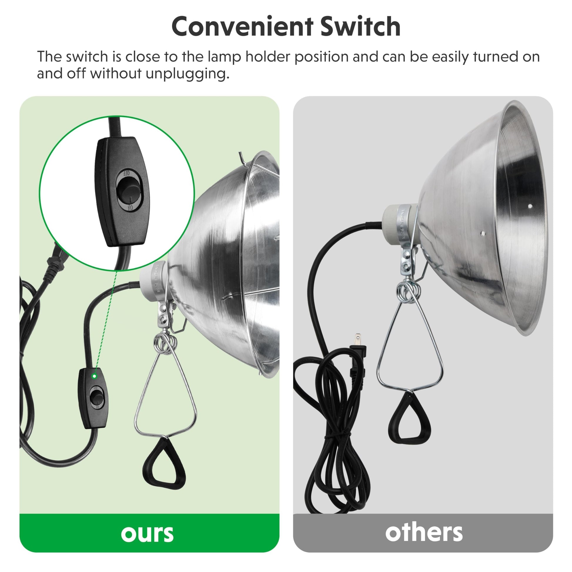 Multifunctional: The clamp light can be used for common lighting in rooms, garages, art studios, or by photographic light. It is also ideal for amphibious and reptile pet terrarium heating lamps and even indoor plant growth lamps.