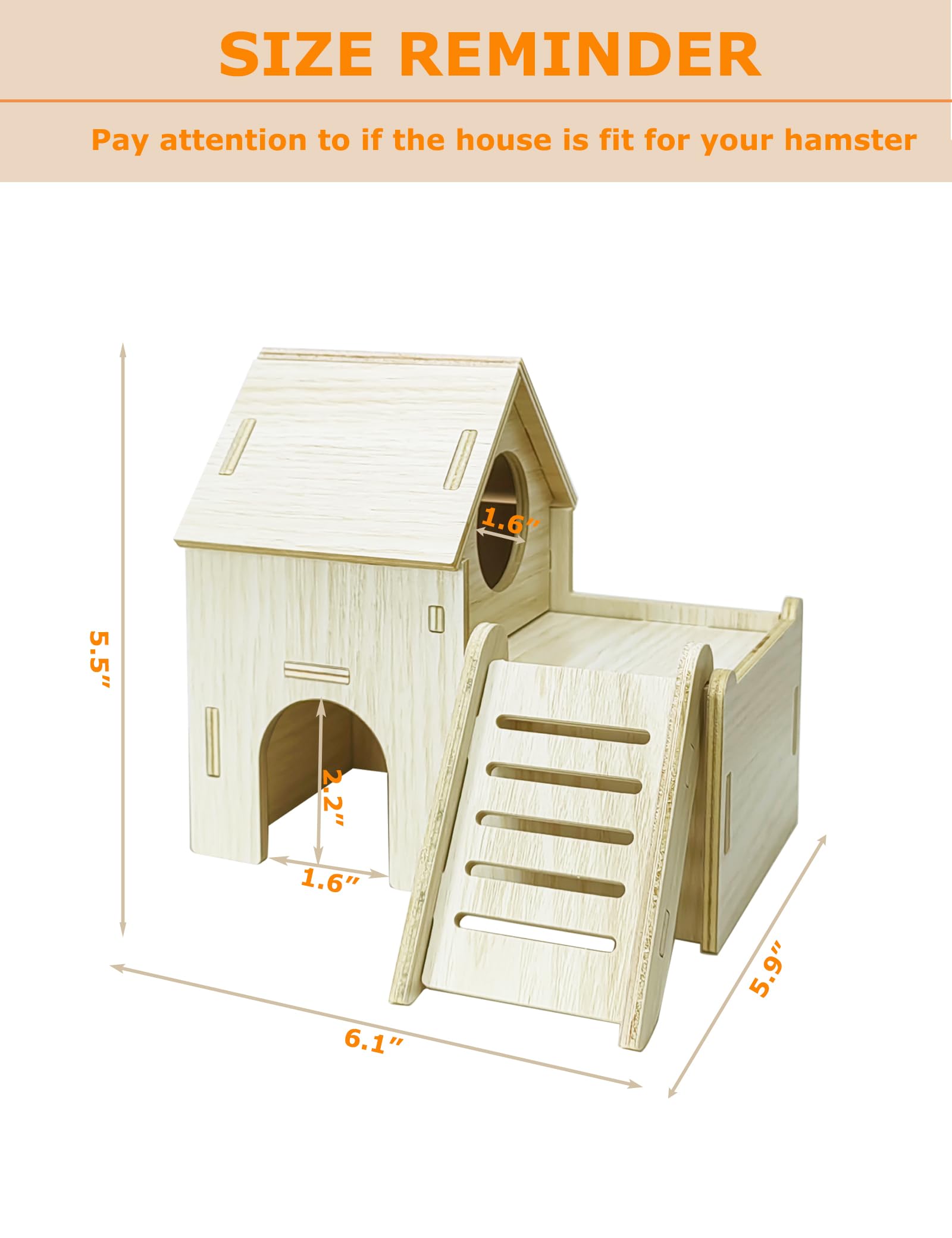 • Funny Hideout: This hamster habitat has secret spaces, provide a playground for mouse to hide, store food and play, the space is conducive to sleeping during the day. This hut satisfies their playing instinct and helps reduce their loneliness and boredom.