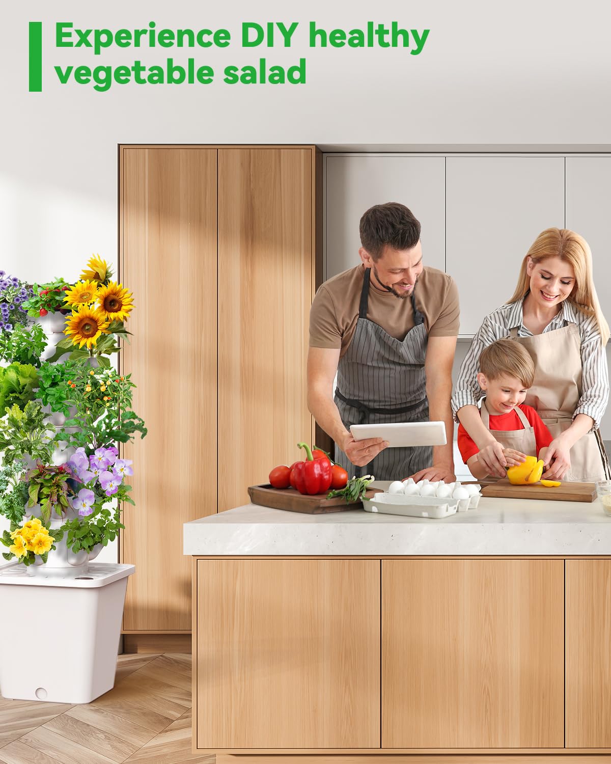 Easily Create Your Own Indoor Garden - perfect for homes, apartments, and small gardens. SJZXUV indoor hydroponics growing system kit compact design maximizes vertical space, allowing up to 30 plants to be cultivated in this white garden tower on just 1 sf.