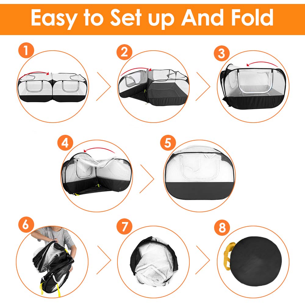 Widely Application --- The breathable mesh fabric of the guinea pig cage provides better ventilation, keeps your pet closer to nature. Indoors the tent is ideal for dogs, cats, isolating an injured pet, or introducing a new pet. Suitable for raising chickens, ducks, rabbits and other small animals