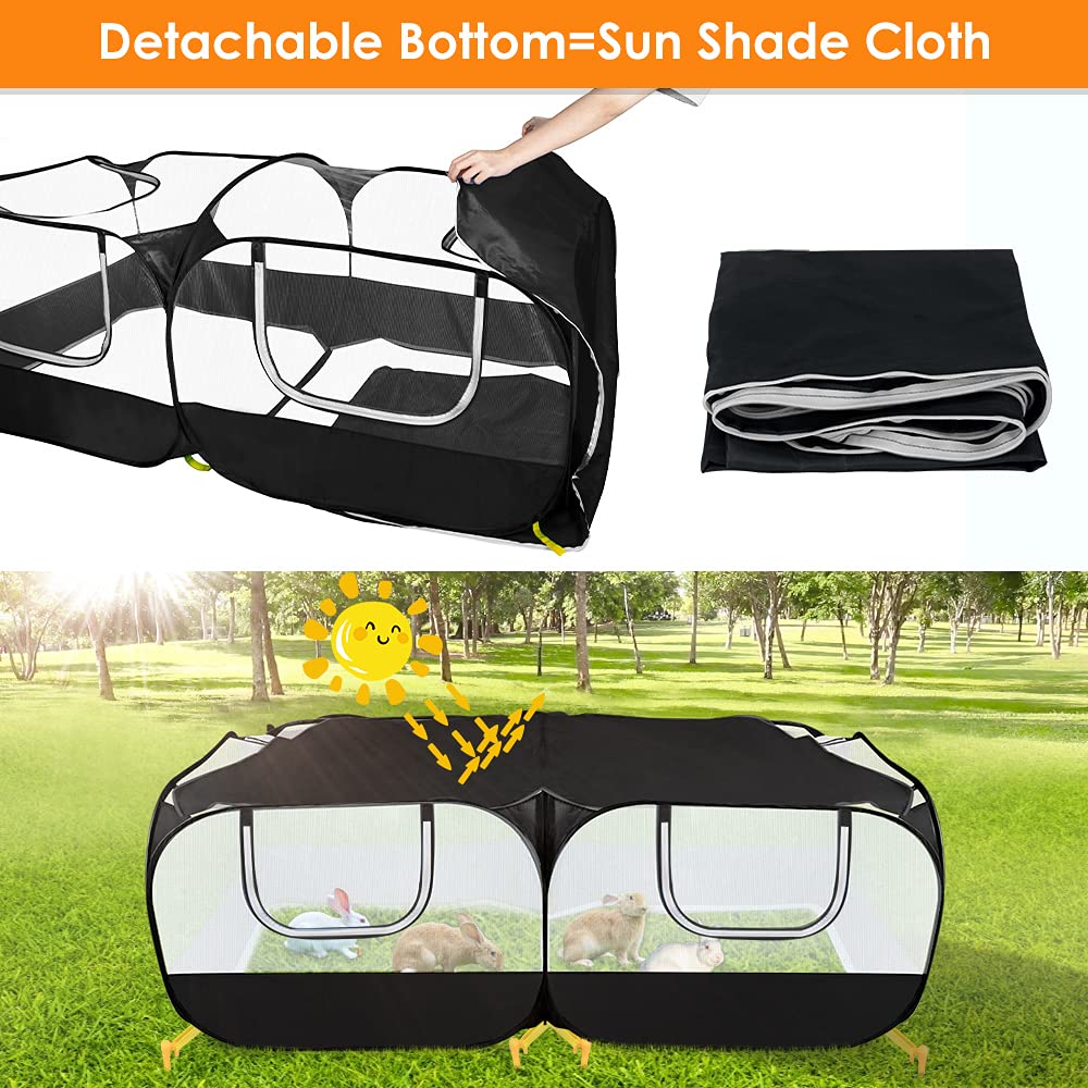 New Generation with Detachable Bottom --- The bottom of the pet playpen can be removed, so that the small animals are closer to nature when used outdoors. The removable bottom can be used as a sunshade cover on the top of the cage to provide additional sun protection