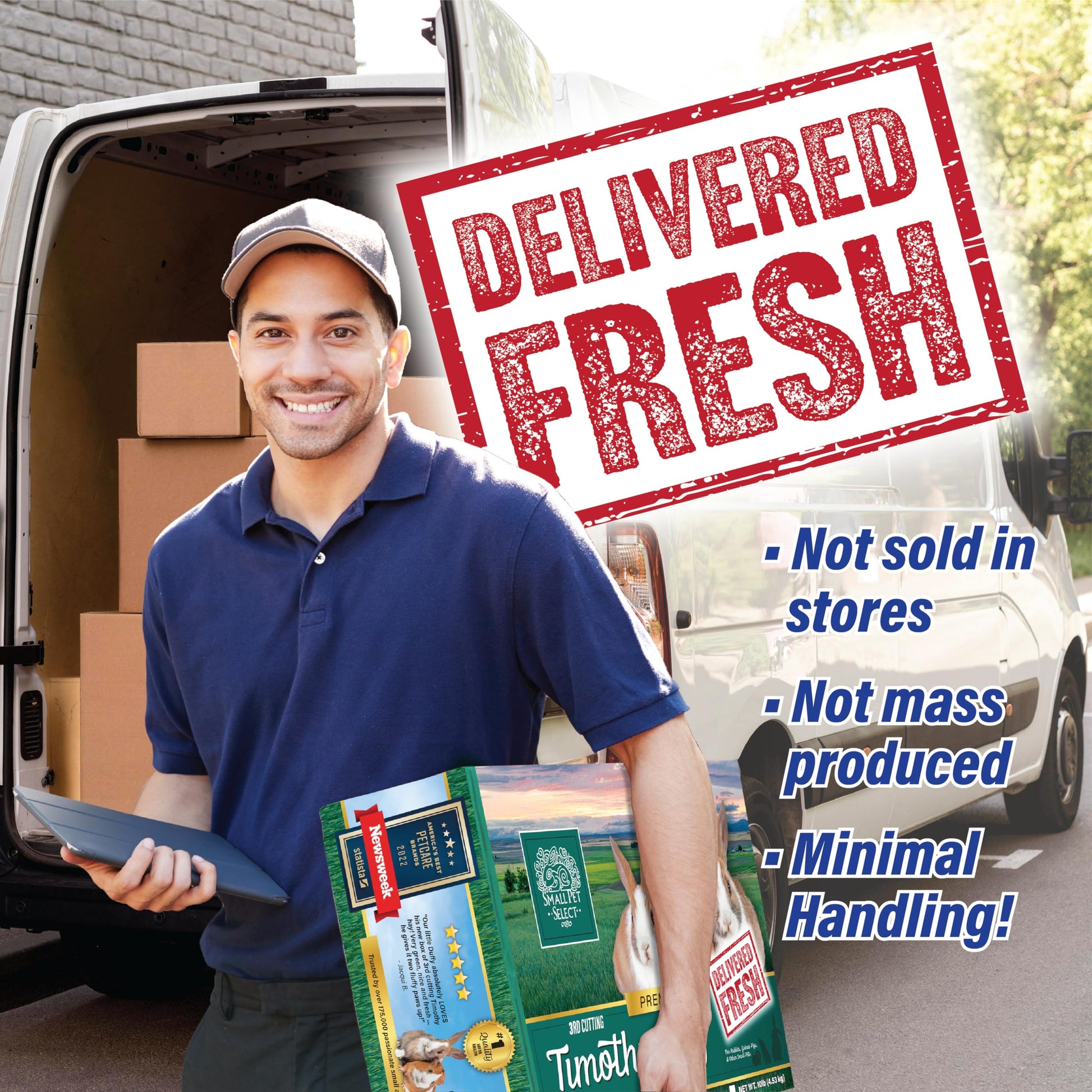 Hand-Selected Timothy Hay - We hand-pack each box in small batches to ensure only the highest quality 100% US-grown 3rd cut Timothy hay arrives at your door. We source our hay in the best fields of Timothy hay grown specifically for pet food so that your little friend gets a safe, tasty supply.