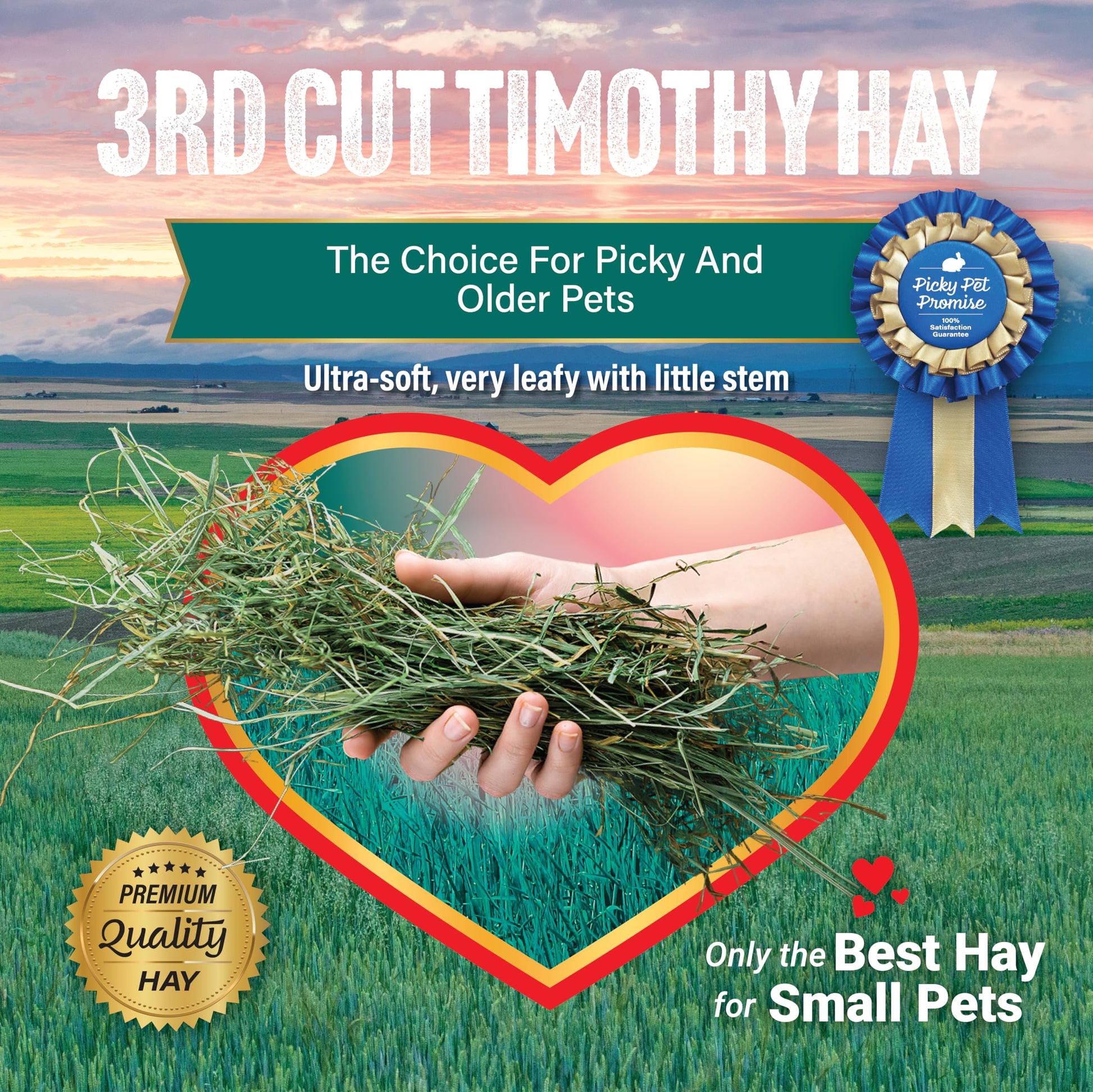 Super Soft Timothy Hay for Picky Eaters - 3rd cutting Timothy hay is a super soft and leafy cut of hay that is less available than rougher cuts, but is the perfect blend for picky eaters or pets recovering from an illness. The low stem to leaf ratio is easier to eat and enticing to rabbits and other pets that won't eat stems.