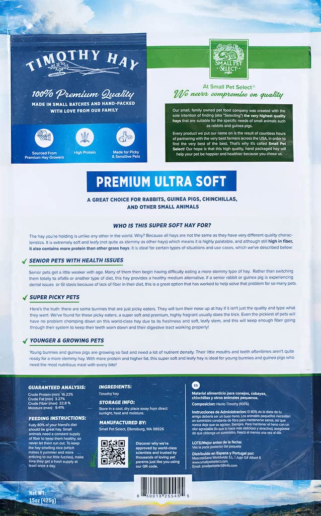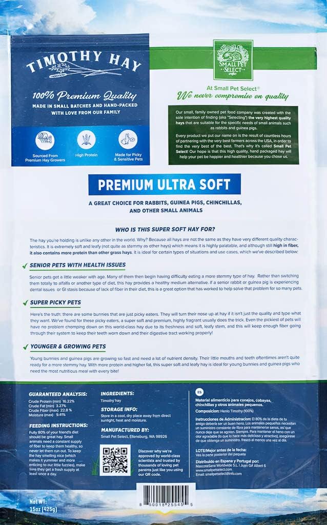 Small Pet Select - Premium Ultra Soft Timothy Hay, Rabbits, Guinea Pigs, Chinchillas, 15oz