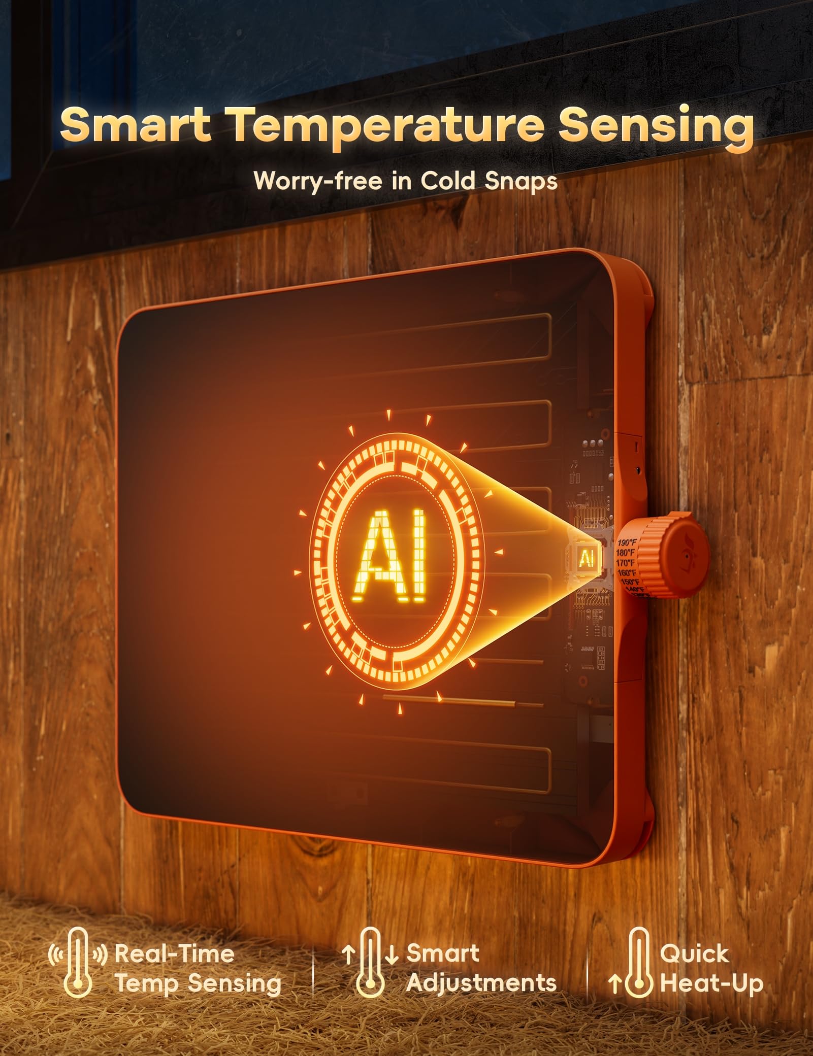 ๐คSMART SENSOR, SAFE COMFORT - Effortlessly adapts to any weather! With a built-in smart temperature sensor, this chicken heater adjusts power in real-time according to the surrounding temperature to maintain your preset temperature, keeping your flock cozy without the risk of overheating or frostbite. Whether it's a winter chill or a cold snap, your chickens stay comfortable and safe all season long.