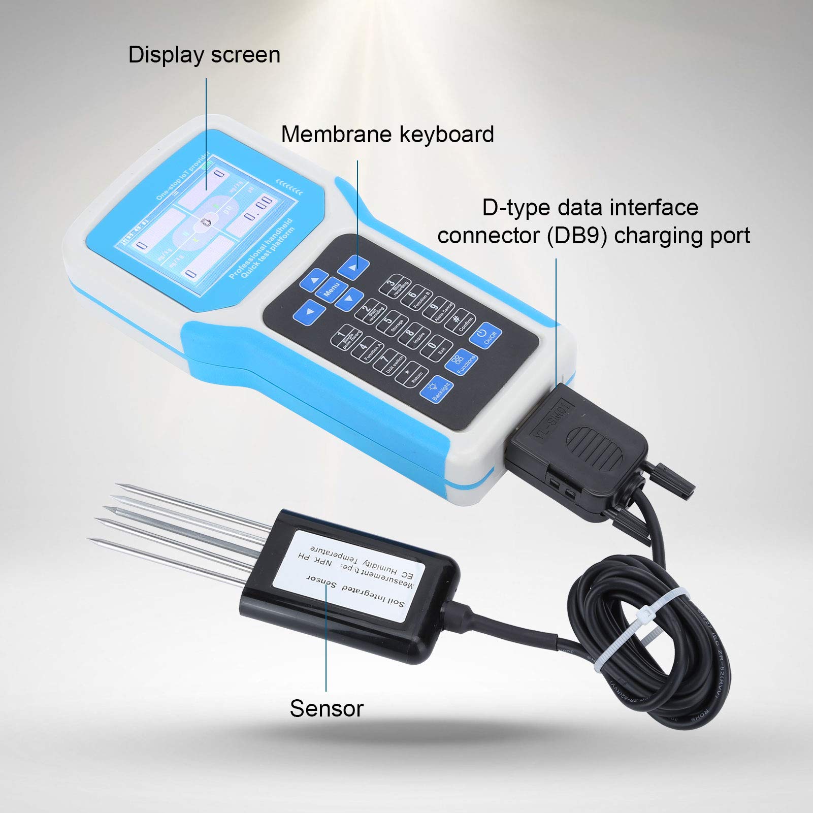 Soil Tester, 7-in-1 2.8in LCD Display High Sensitivity Handheld Soil PH Meter Kit Soil Temperature Humidity Conductivity Nitrogen Phosphorus Potassium Moisture Meter for Petrochemical, Agriculture