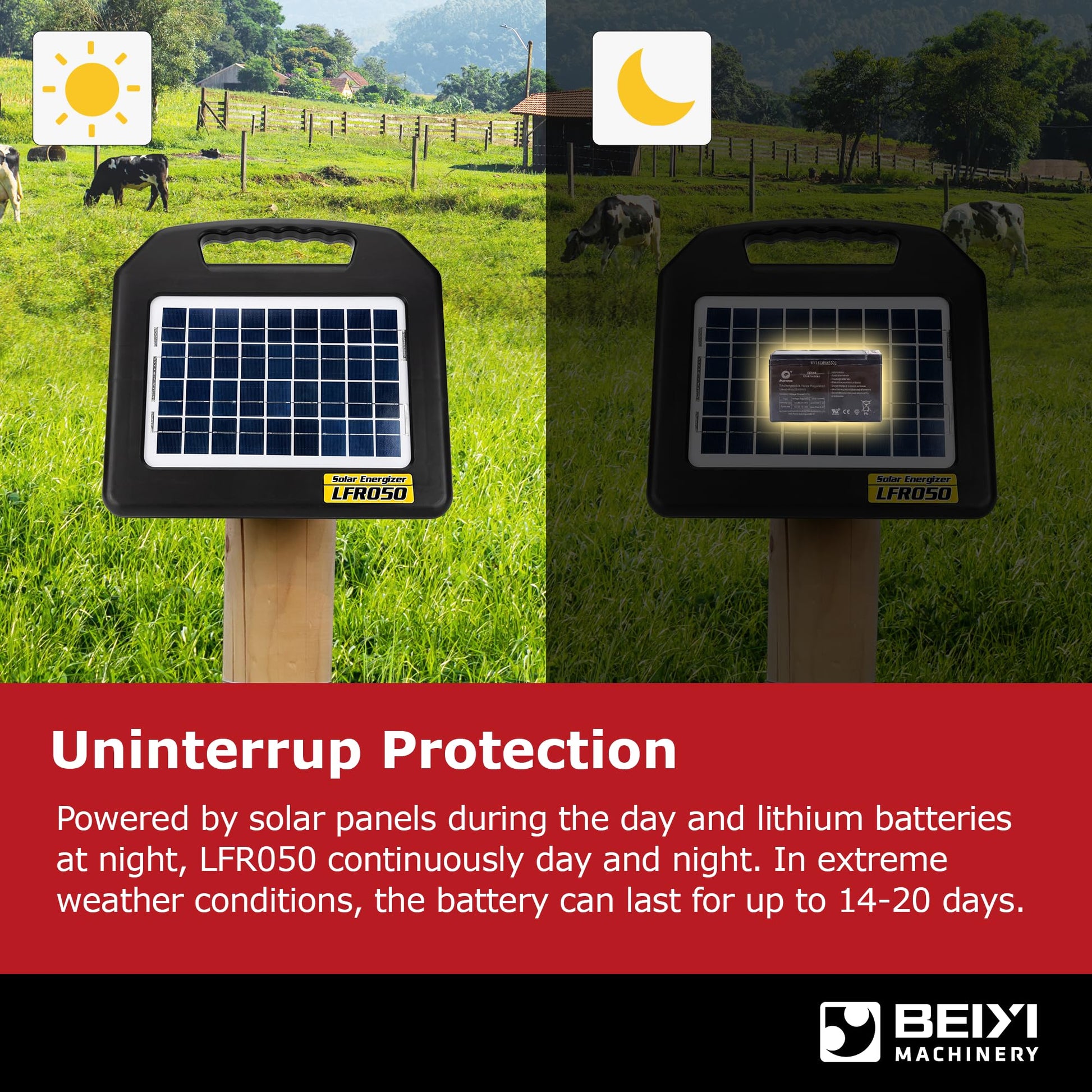 Powerful Output: The Electric Fence Charger delivers an impressive 0.65 joules of output power, effectively charging solar-powered fences up to 35 miles, making it ideal for protecting livestock such as cattle, horses, and sheep.