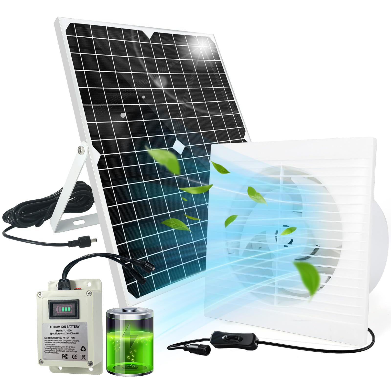 Solar Fan for Chicken Coop with Battery 25W Solar Panel Powered Exhaust Fans with 14.8ft On/Off Switch Cable for Greenhouse, Sheds, Pet Houses, Ventilation, Outside, Greenhouse Air Circulation Garages