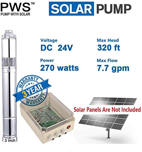 ESSENTIAL PARAMETER: Solar water pump, 0.4HP, 24v DC, 320ft, 7.7GPM, 3/4” size stainless steel deep well submersible pump, durable for home and industrial use