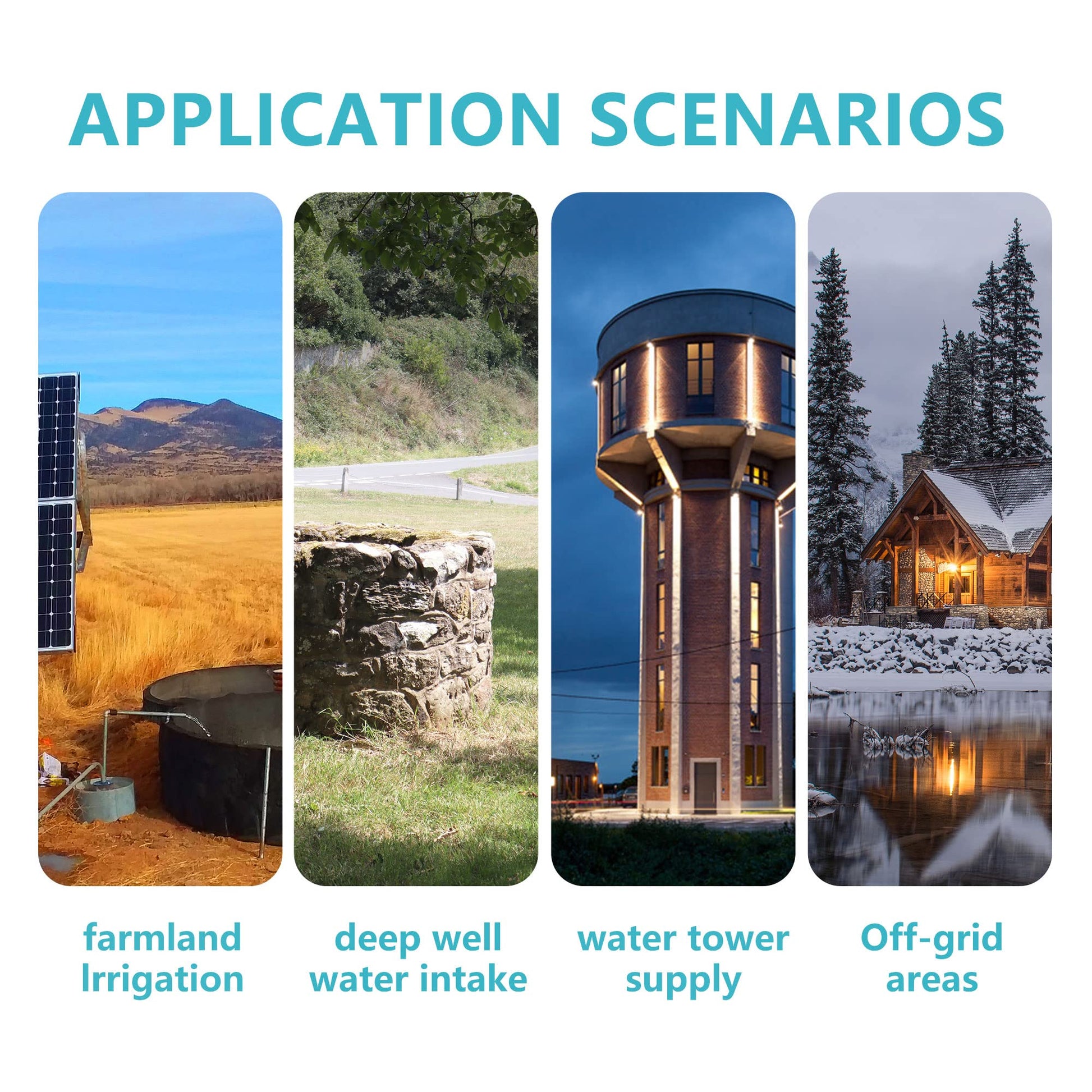 ✅【Solar Powered】The deep well pump is powered by solar energy, ensuring efficient and sustainable operation for remote areas without access to electricity.