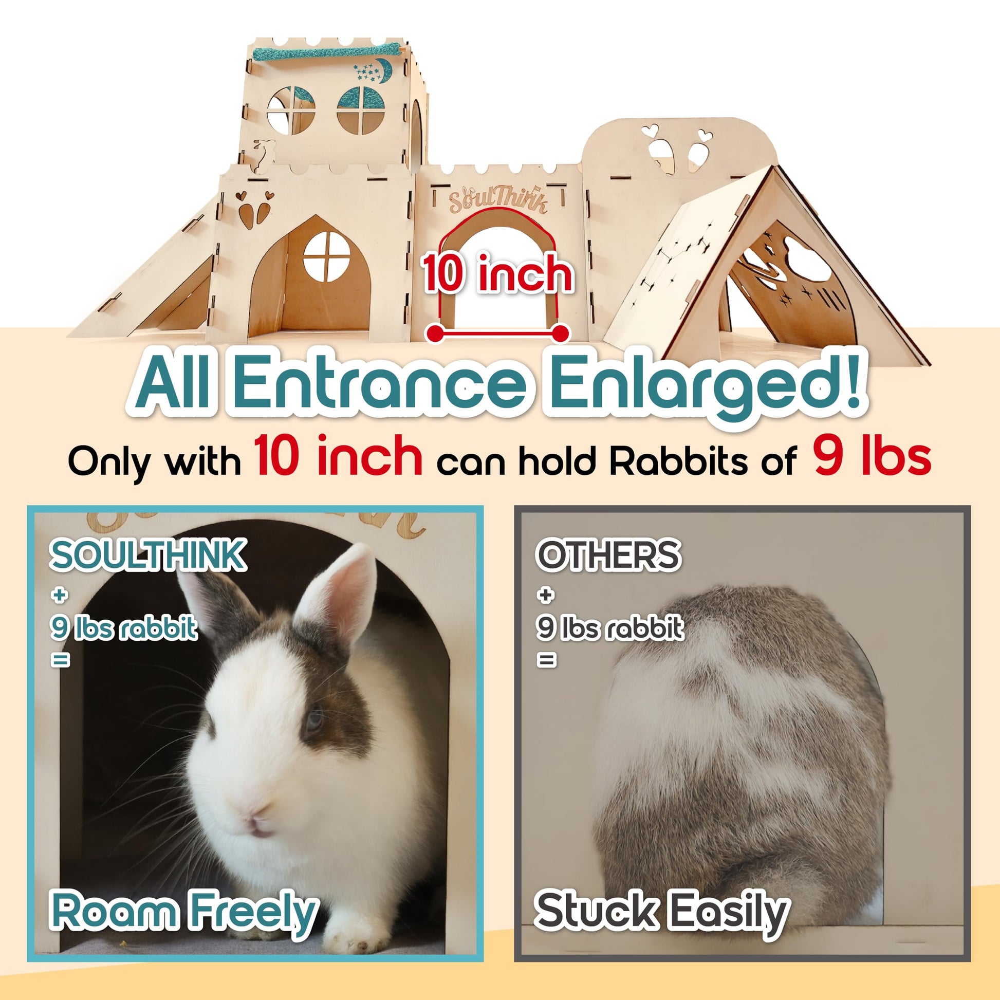 Soulthink® Extra Large Rabbit Hideout and Castle - Easy to Assemble Wooden Houses and Hideouts with Ramps and Tunnels Bunny Castle and Rabbit House for Rabbits to Hide and Play Indoor