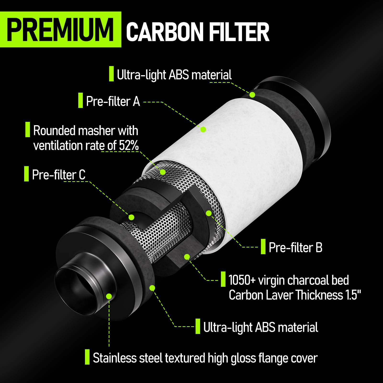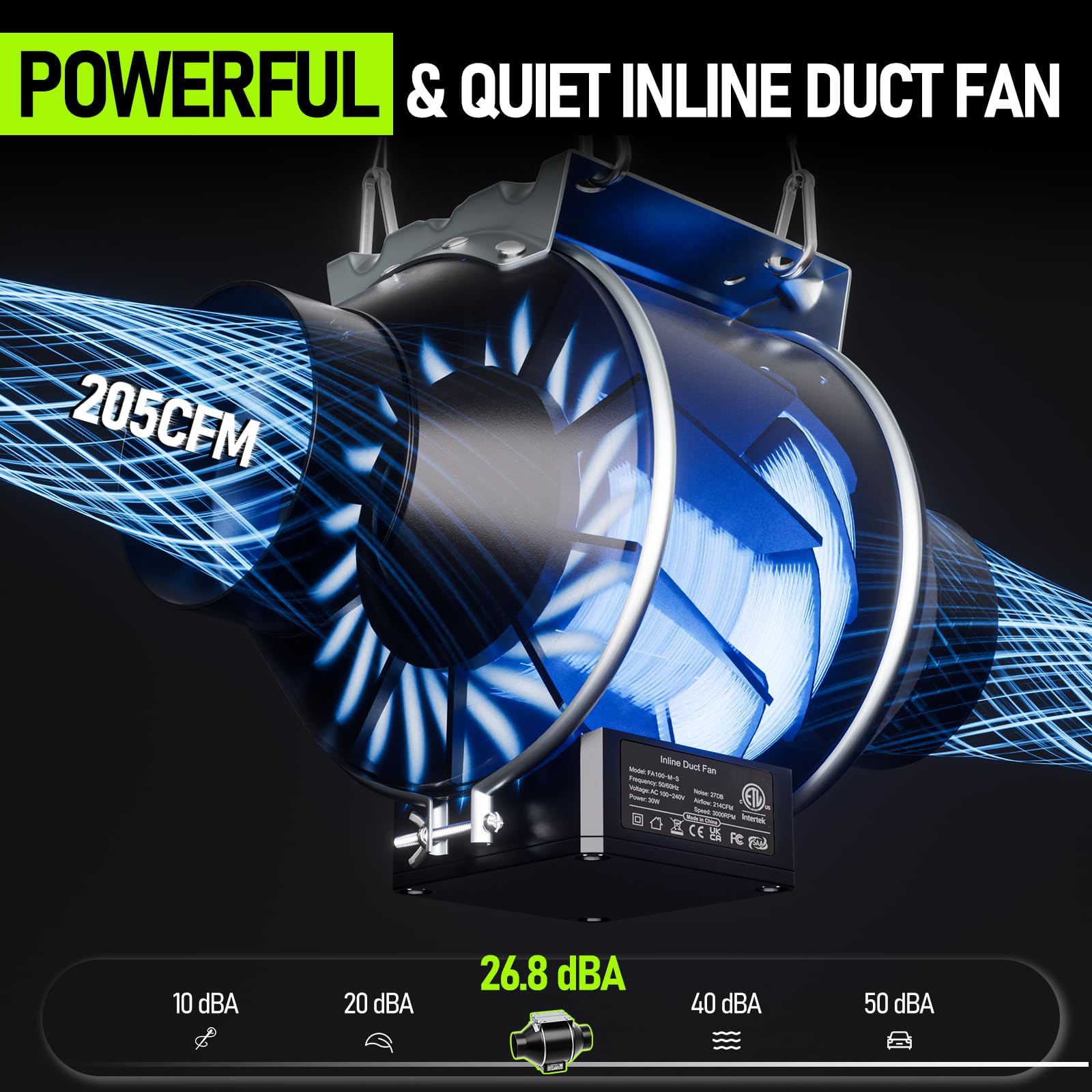 Mute & Powerful Ventilation System: The ventilation system consists of 4-inch inline fans, coal based activated carbon filters, and aluminum ducts. The temperature/humidity inside the tent can be controlled by adjusting the wind speed through a manual controller. The fan can provide strong airflow from 0 to 2600 revolutions per minute, quickly circulating cooling and eliminating odors. The noise is only 28 decibels