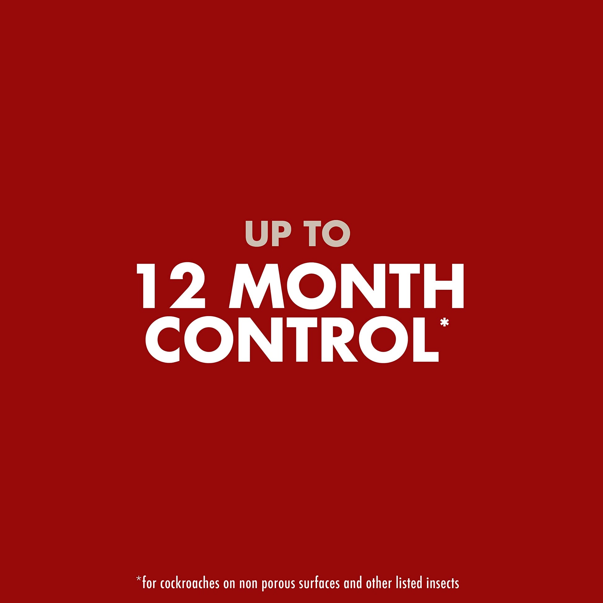 • KILLS ON CONTACT: Up to 12 months of control for cockroaches on non-porous surfaces — also kills ants, spiders, fleas, ticks and other listed insects.