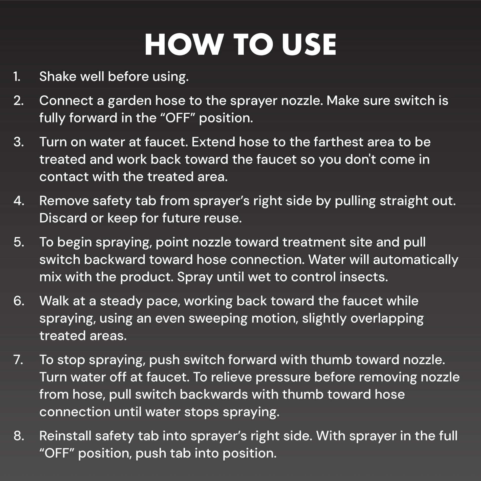 CONCENTRATE FORMULA: Ready-to-spray QuickFlip spray concentrate that attaches directly to your garden hose