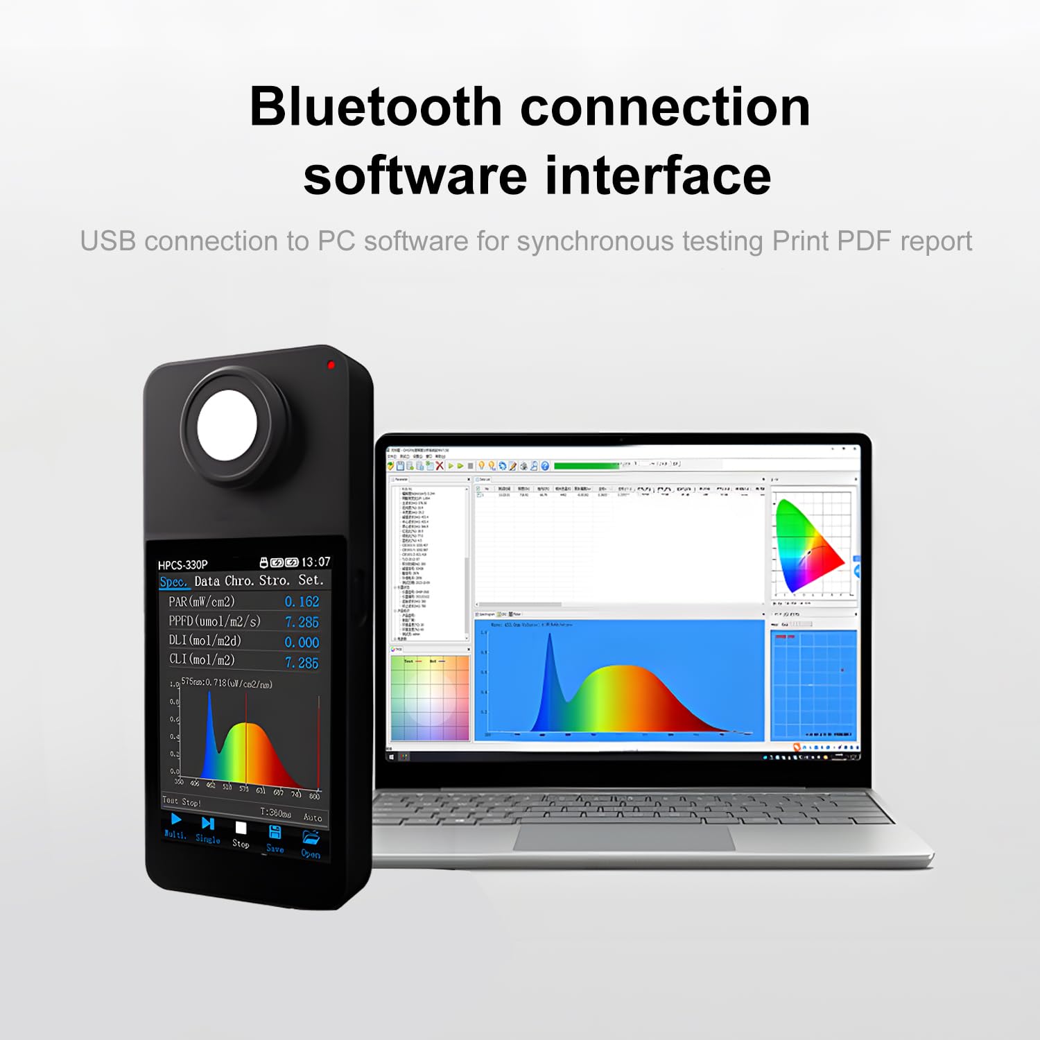 Comprehensive Analysis Software: Included is sophisticated PC software that facilitates thorough analysis and accurate processing of spectral data. It supports synchronous testing and a variety of data export options, including Excel, PDF, and screenshots, allowing for deep dives into spectral analysis and interpretation.