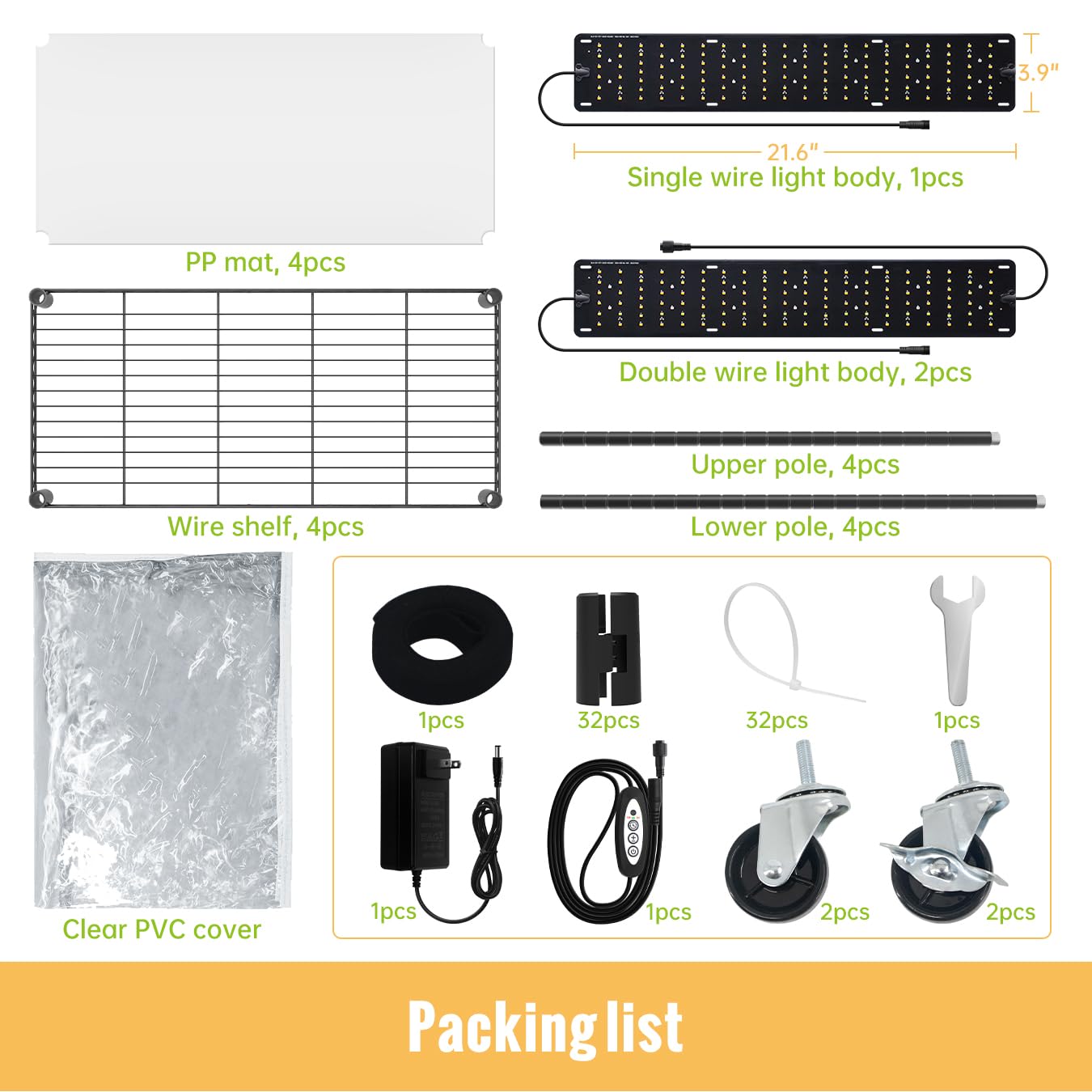 Durable 4-tier Mini Greenhouse with Shelves: DIY plant stand indoor with grow lights can adjust the height and accommodate your planters with ease. With high-quality metal shelves and heavy-duty bearing nets, it caters to more seed trays and growing lights. This plant shelf with grow light ensures long-term use, measuring 30"(L) X 14"(W) x 59"(H)