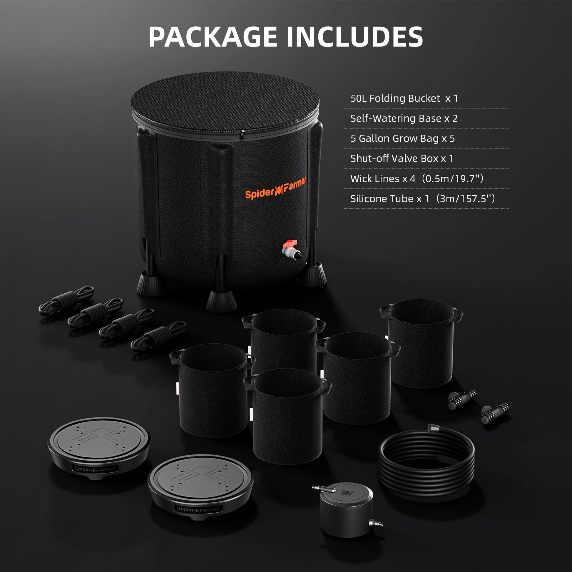 πππ-ππ-πππ ππππ -ππππππππ πππ: Get everything you need in one powerful package: four self-watering bases, a 13-gallon water reservoir, five 5-gallon grow bags, wick lines, shut-off value box and water tubes. Just set it up and watch your plants thrive!