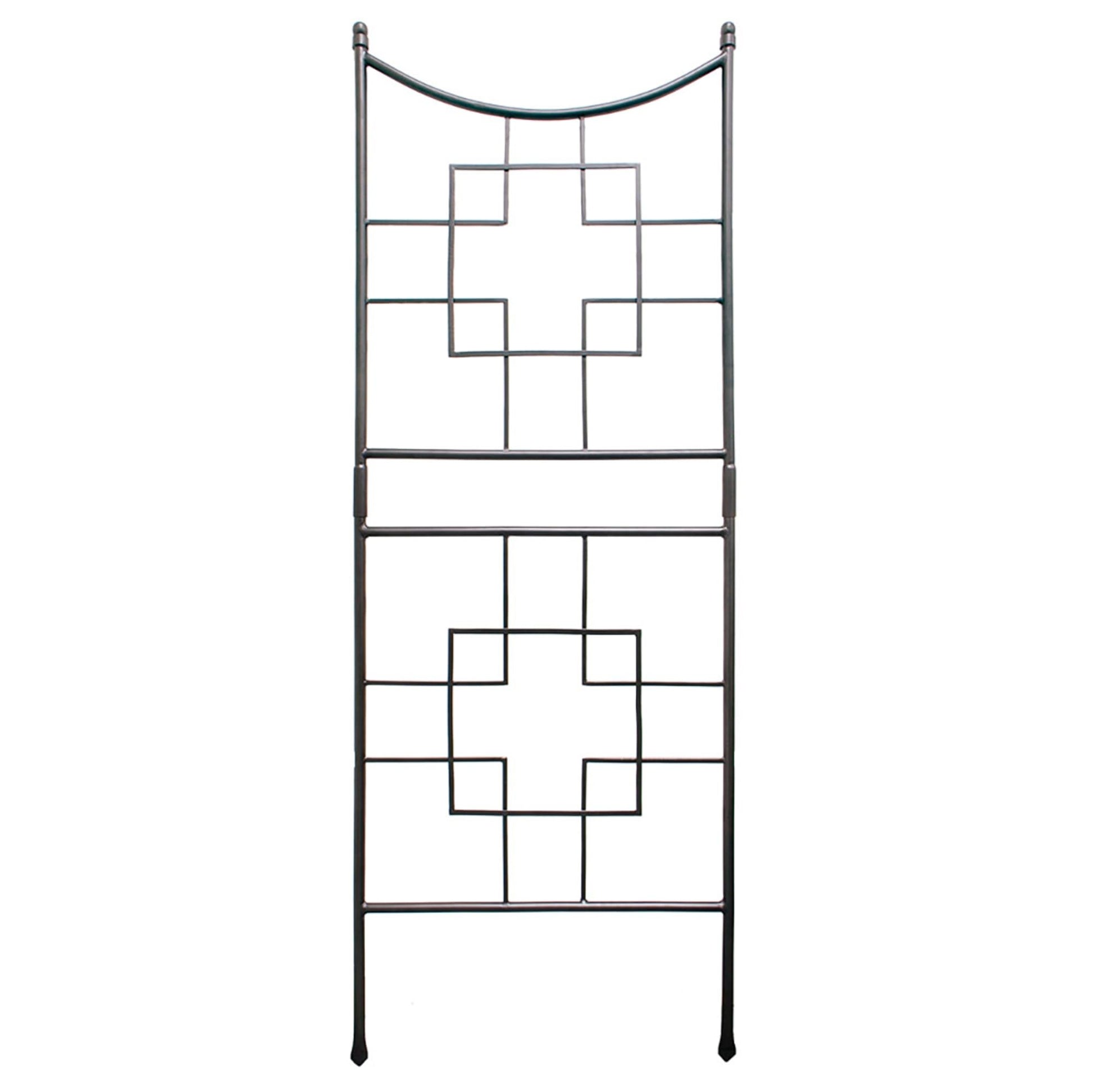 • Airy wrought iron pieces are slim yet strong, providing a strength and longevity that can reliably support your long-term perennial plantings. Square -On-Squares Trellis is a generous 86-in H x 31-in H. Add a Square-On-Squares Center Link to increase width by 17 ½-in, and join two Square-On-Square Trellises sections together.
