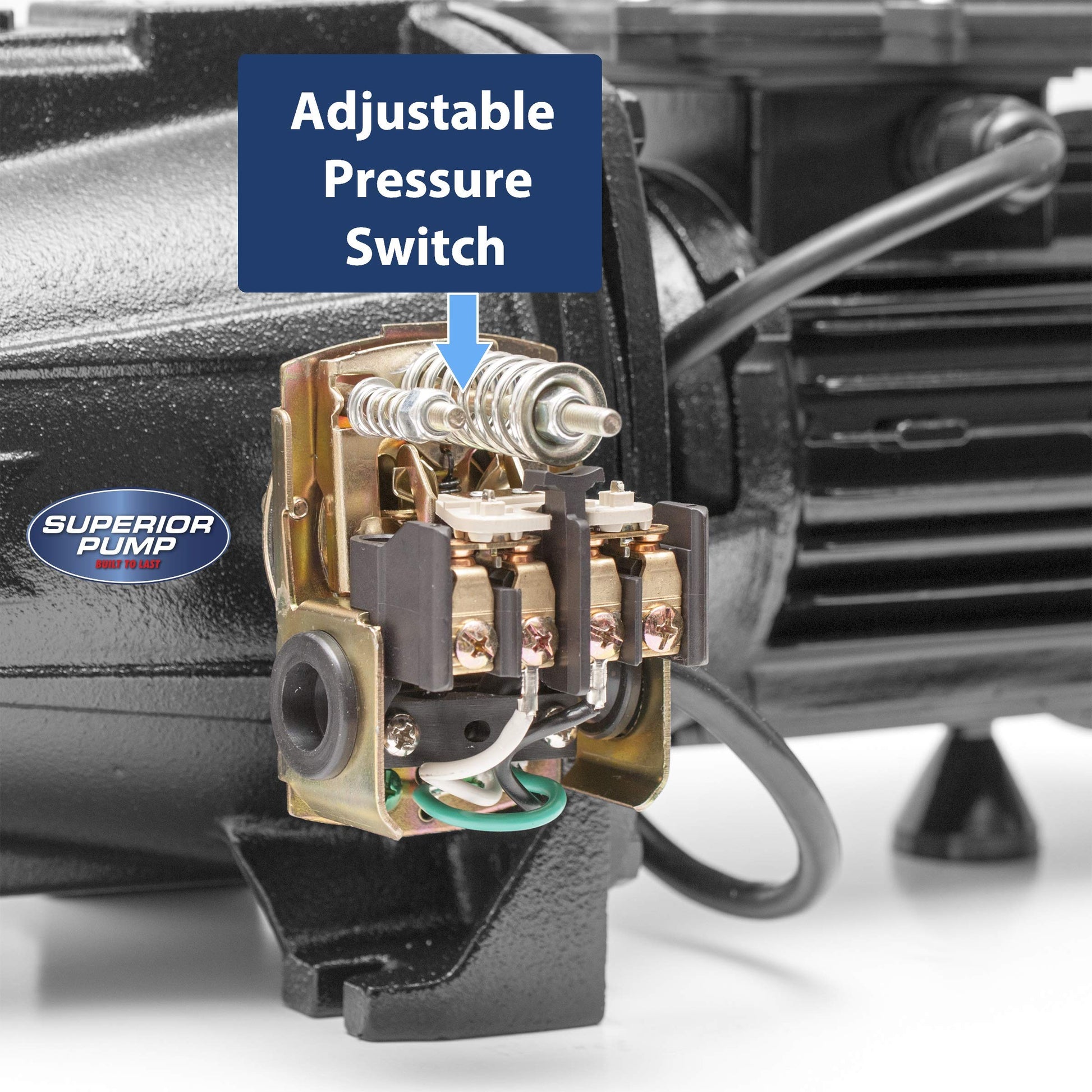 • Pre-mounted fully adjustable pressure switch and cast iron seal plate; Pre-mounted to 25l pressure tank