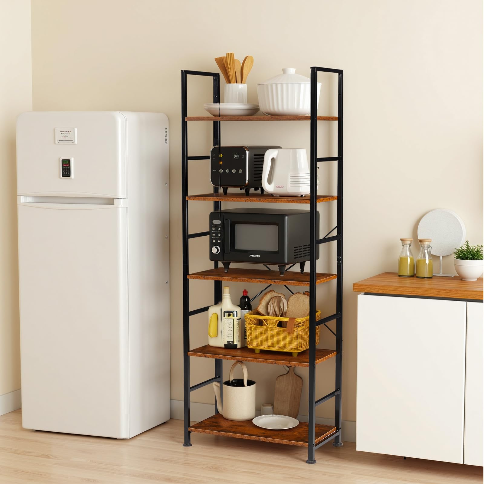 Spacious 5-Tier Open Storage: Featuring 5 open shelves, this vertical storage rack provides ample space to organize and display books, collectibles, photo frames, and more. Shelf height: 13”, perfect for tall books and decor.
