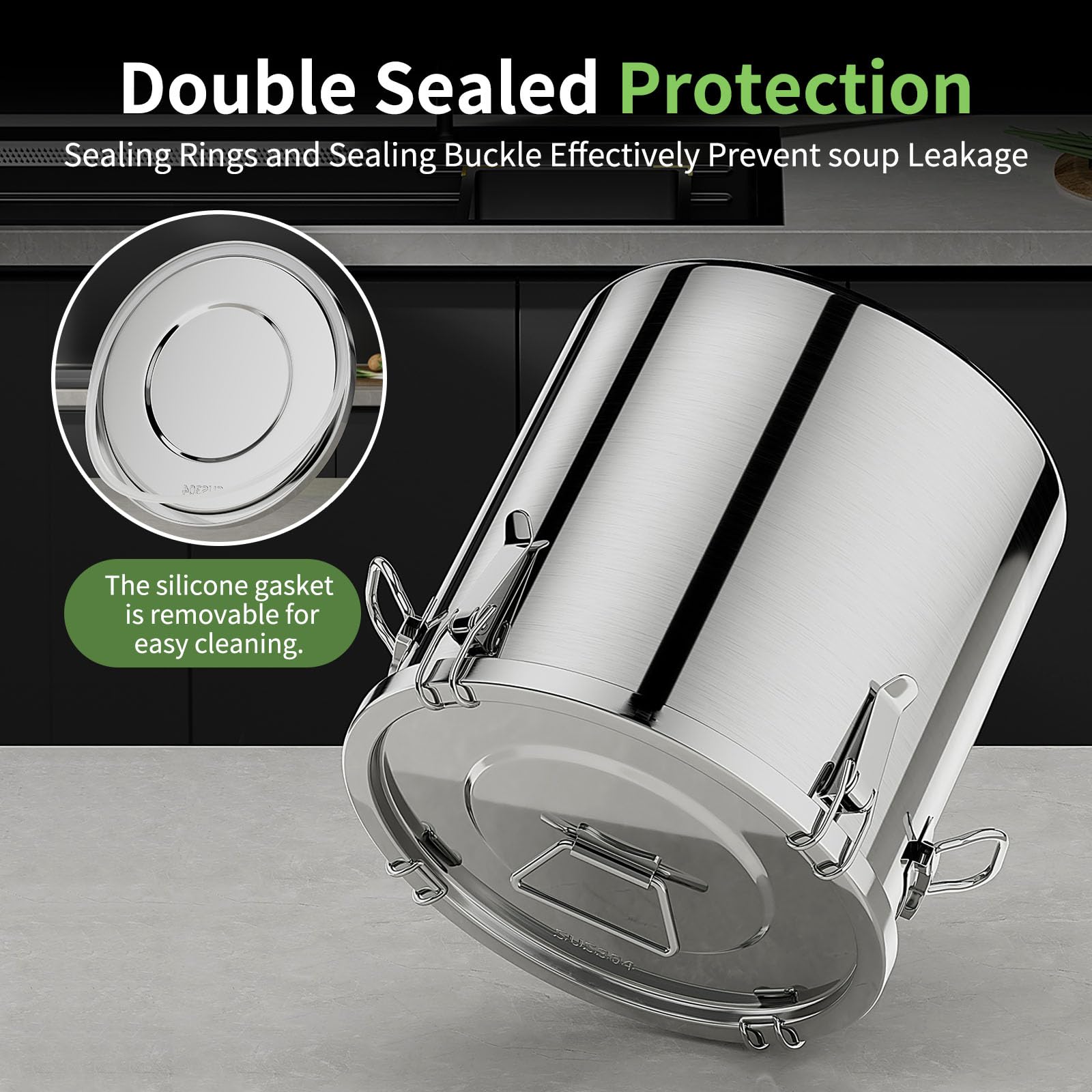 Long service lifespan and Sturdy:304 stainless steel food containers,boasts exceptional corrosion defiance,ensuring it won't rust in harsh environments and can withstand high temperatures,this bucket features thickened walls and base with integrated stamping and reinforced rim technology,delivering exceptional impact defiance,pressure-proof,and deformation-resistant performance,Long service lifespan