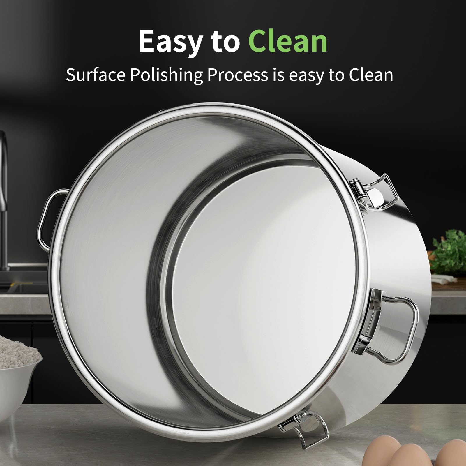 Easy to use and clean:The 304 stainless steel bucket Handle Makes it easy to move or pour our Internal items,Double Sealing Protection so you can store your food with confidence,Surface Polishing Process is easy to Clean,you can remove stains with just a simple wipe