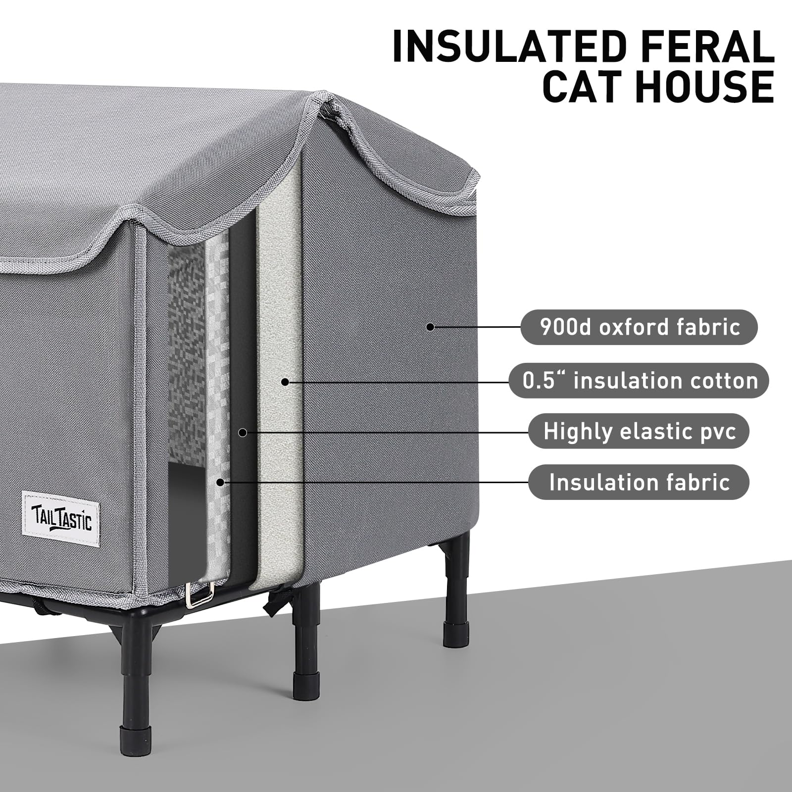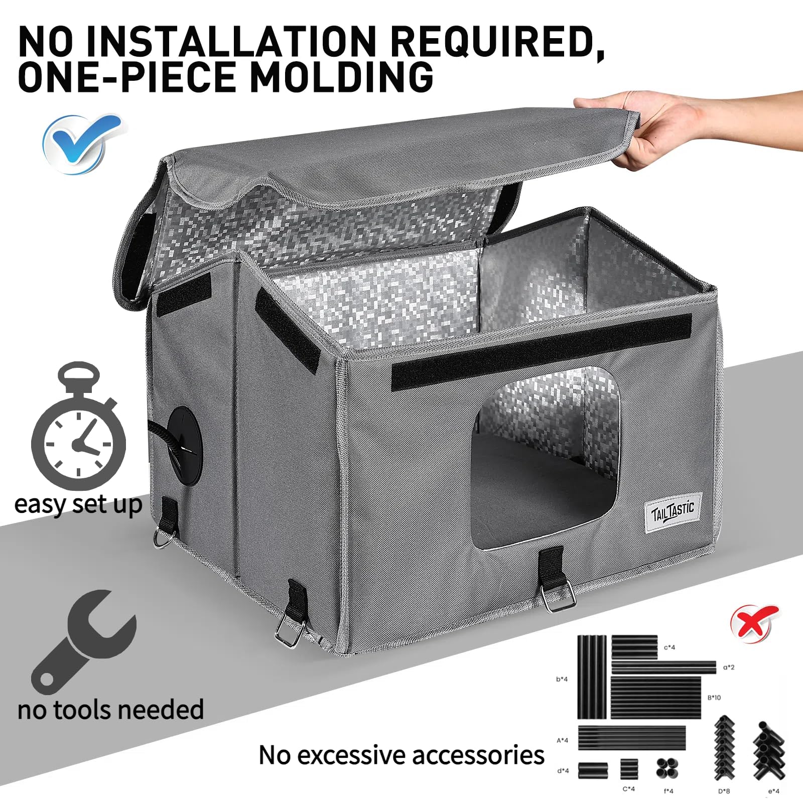 Ultra-Warm Insulation:Designed with extra-thick foam insulation, this outdoor cat shelter retains heat efficiently and blocks wind and moisture. Keeps cats dry and warm inside during rain, snow, or cold winds