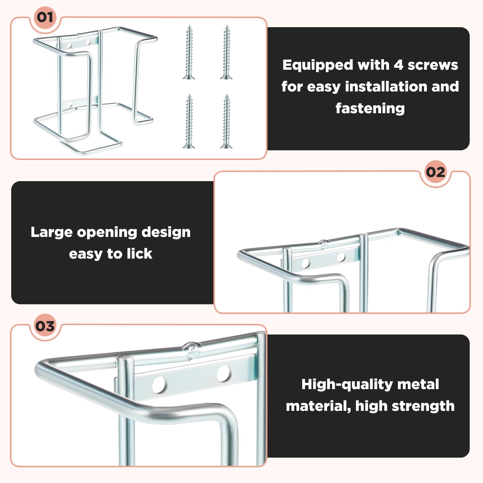 Package Includes: you will receive 4 salt block racks to meet your different needs, these holders can hold standard size salt blocks securely; Each size is about 5.3 x 3.3 x 5.5 inches, with screws, can be easily installed