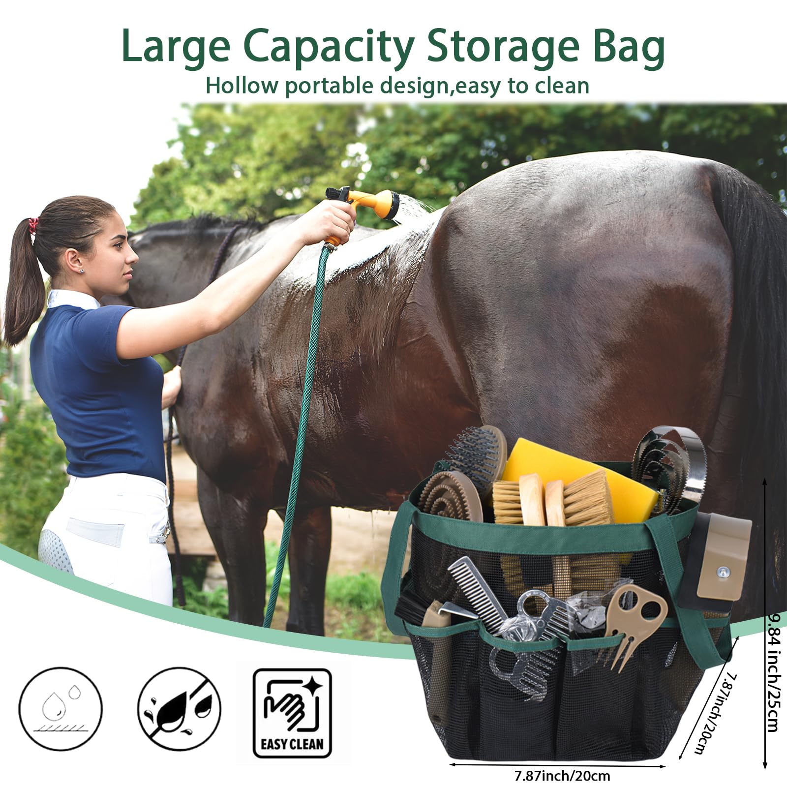 【Convenient Storage & Carrying】 The horse grooming tools come housed in a practical storage bag, making it easy to keep your supplies organized and portable. The mesh bag design is also effective in draining away excess water and dirt after grooming. It's for use in horse tack rooms or for on the go, ensuring you have quick access to your essentials.
