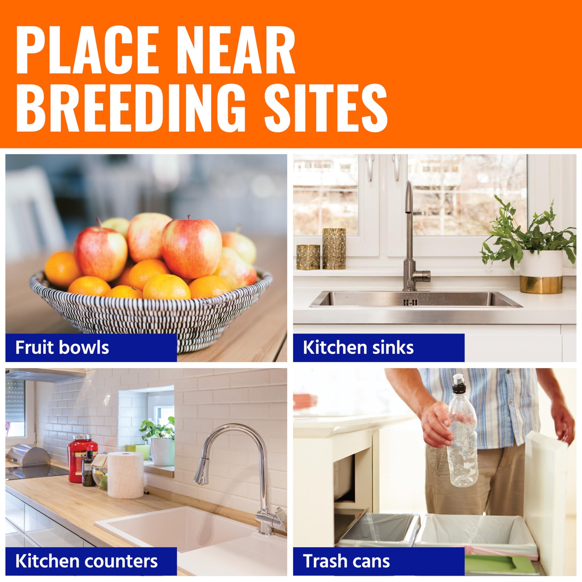 TARGET BREEDING AREAS: These indoor fruit fly traps are most effective when placed near fruit bowls, trash cans, and counters to control fruit fly breeding locations