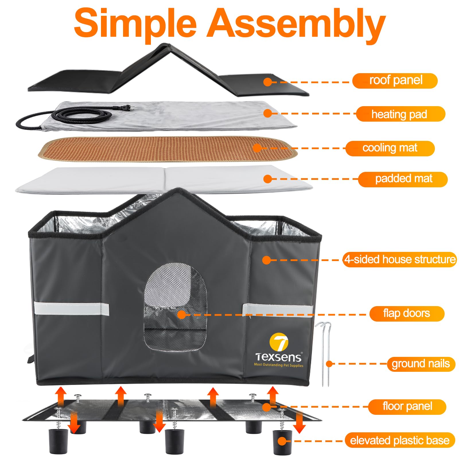 Keep Your Pets Warm - Equipped with a UL-tested heating pad, soft cotton mat, and cooling pad for all-season comfort, our cat house ensures warmth with comprehensive foil insulation inside, even in freezing temperatures