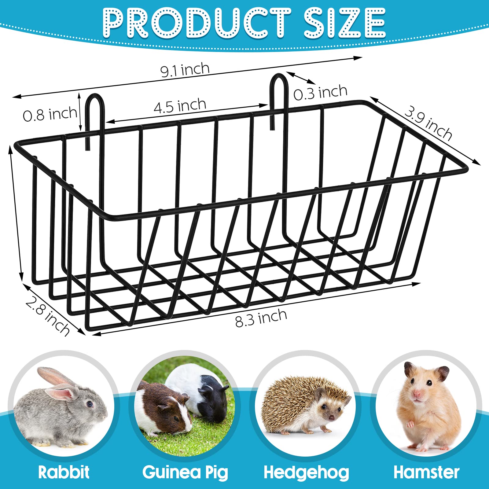 Easy to Install: the hay rack for rabbits is designed with hooks for easy installation, just hang them on the wires of pet cages, no other tools or complex steps needed, safe for pets to get hay or grass, due to the heavy duty wire design, it can keep in place without moving when pets are eating, and you can also remove the rack for refilling easily