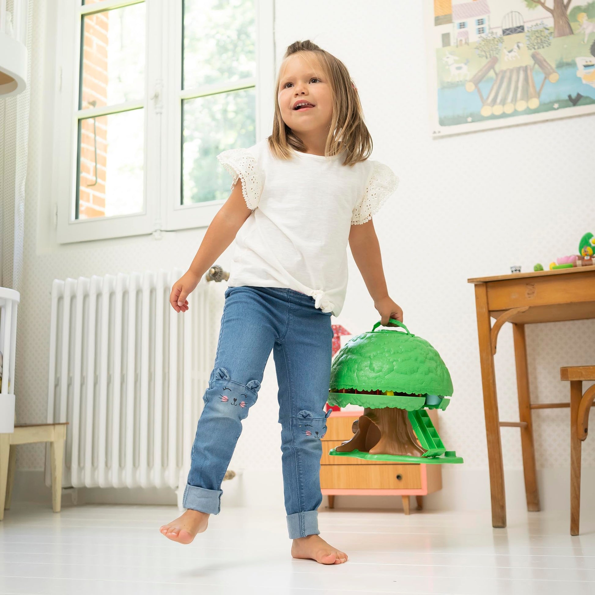 COMPLETE PLAYSET: Includes a Magic Treehouse, 2 Timber Tots characters, a car, 2 beds, a table, 4 chairs, a bench, an armchair, and fun stickers to personalize your play experience. NATURE IS MAGIC!
