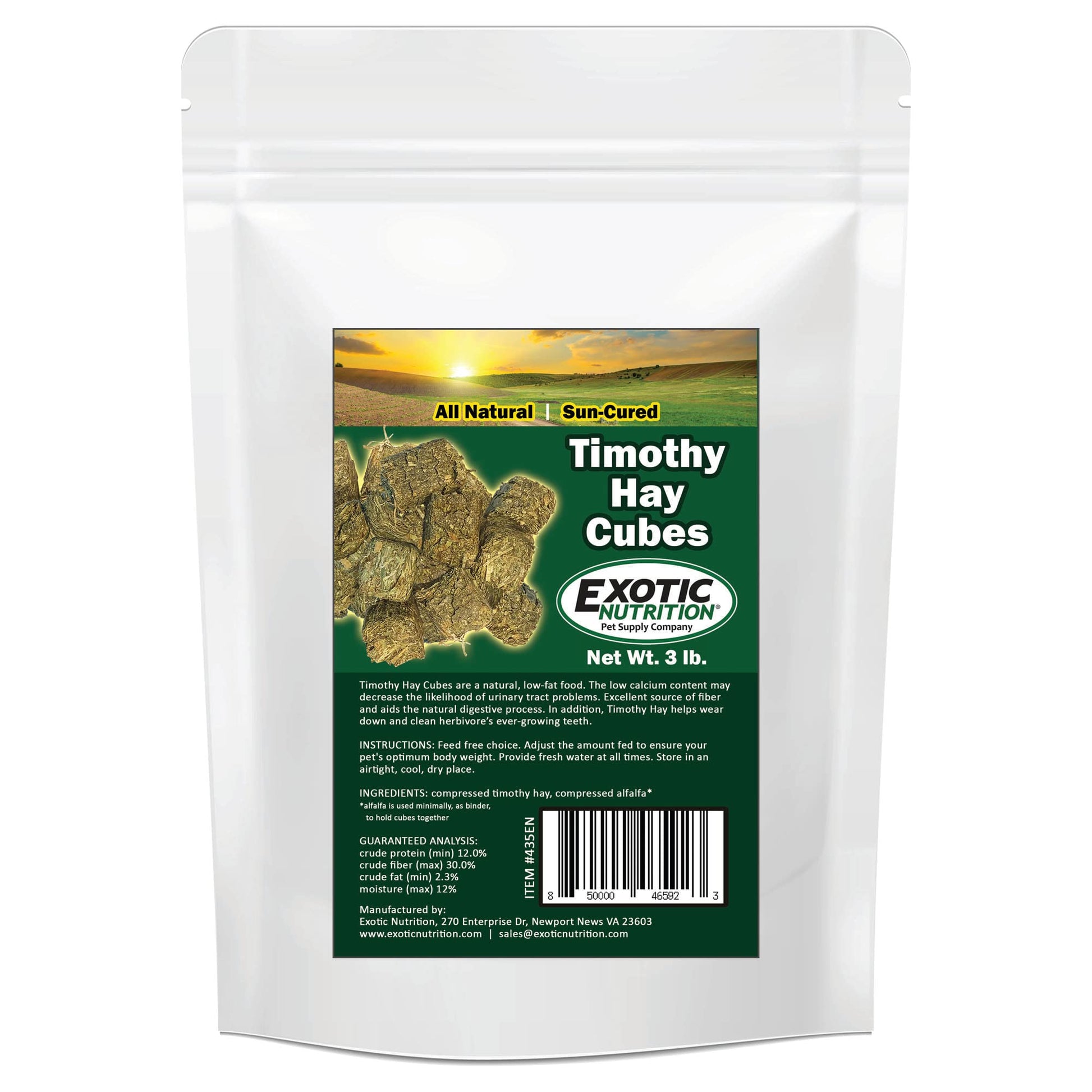 Timothy Hay Cubes 3 lb - 100% All Natural, High Fiber, Sun Cured Timothy Grass Food & Treat - Rabbits, Guinea Pigs, Chinchillas, Degus, Prairie Dogs, Tortoises, Hamsters, Gerbils, Rats & Small Pets